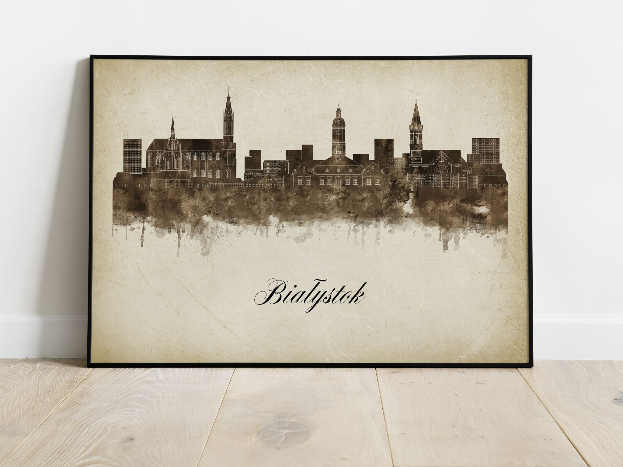 Plakat Skylines Białystok w stylu Vintage- Poziomy