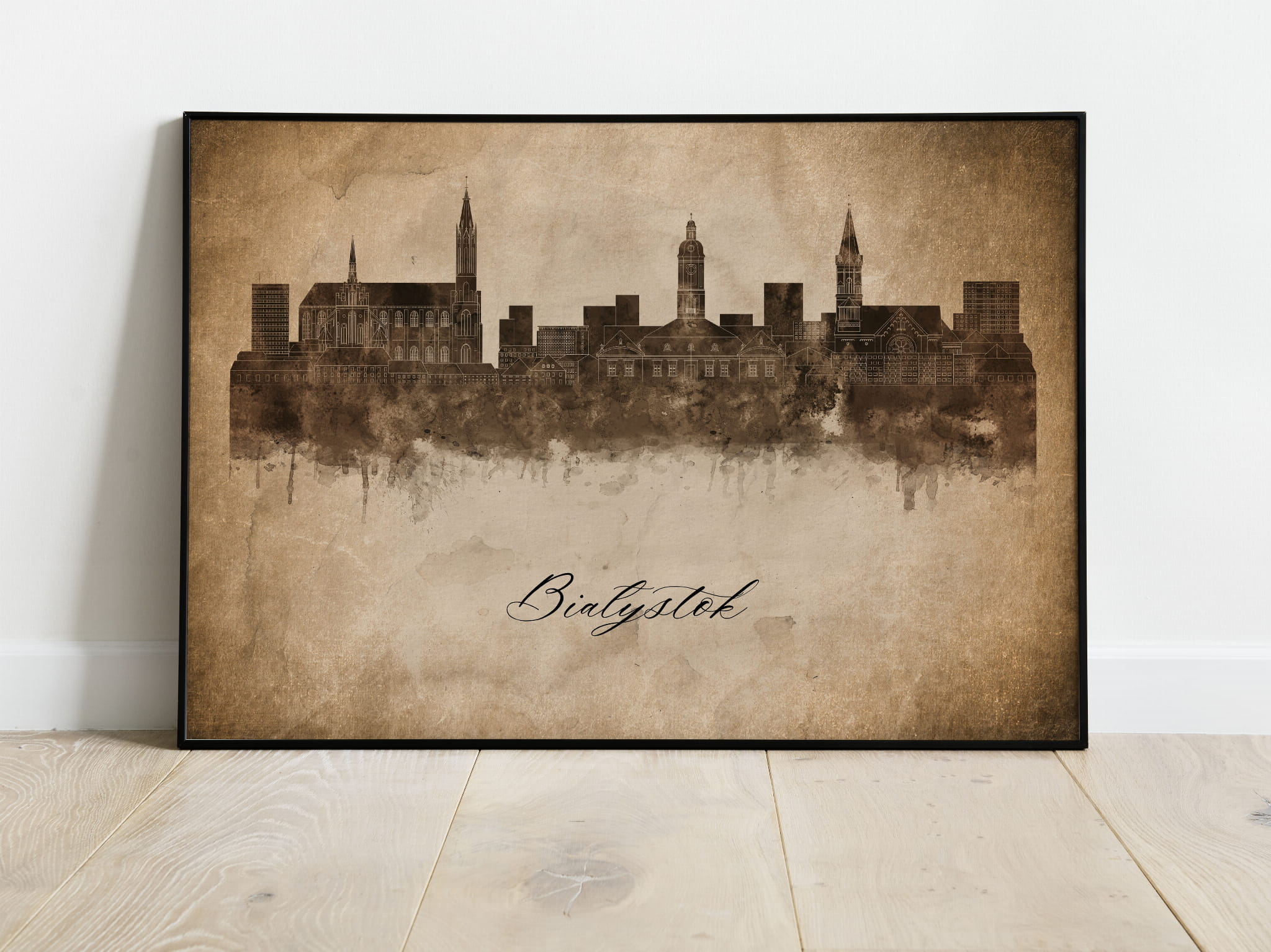 Plakat Skylines Białystok w stylu Vintage- Poziomy