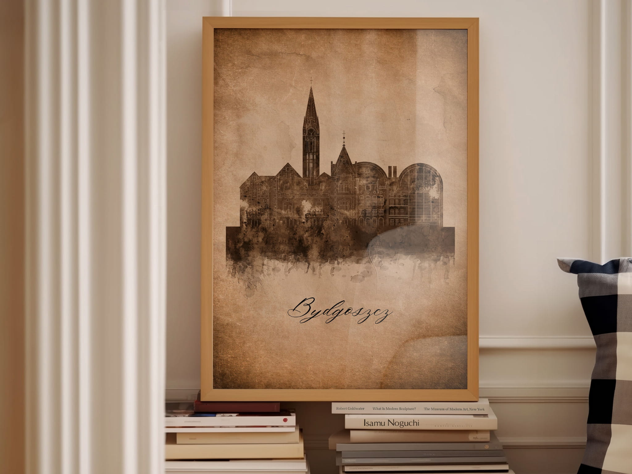 Plakaty skyline w stylu vintage to nowoczesne dzieła sztuki, które nawiązują do estetyki minionych dekad. Przedstawiają miejskie krajobrazy w retro kolorystyce, z wyblakłymi barwami i z delikatną patyną czasu. Kontury są często zmiękczone, a szczegóły budynków lekko stylizowane, co dodaje im nostalgicznego uroku. Tła plakatów utrzymane są w odcieniach przypominających stary papier, z subtelnymi teksturami i ciepłymi, przygaszonymi tonami. Całość tworzy elegancki i przytulny klimat, idealny do wnętrz, które łączą nowoczesność z klasycznym wdziękiem.