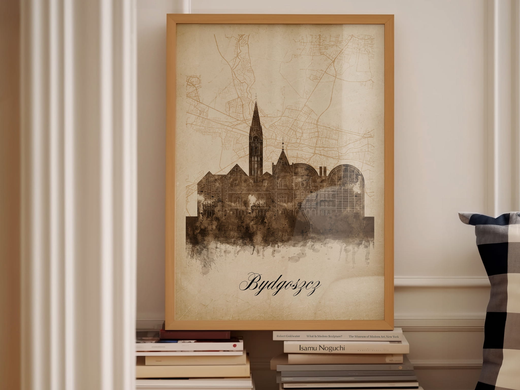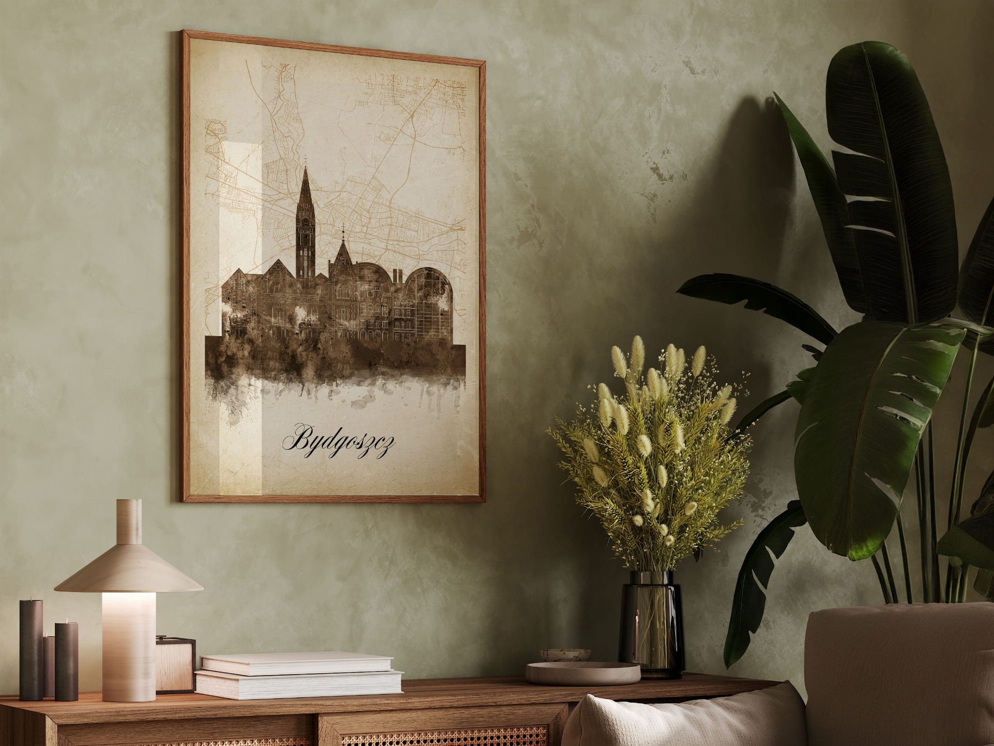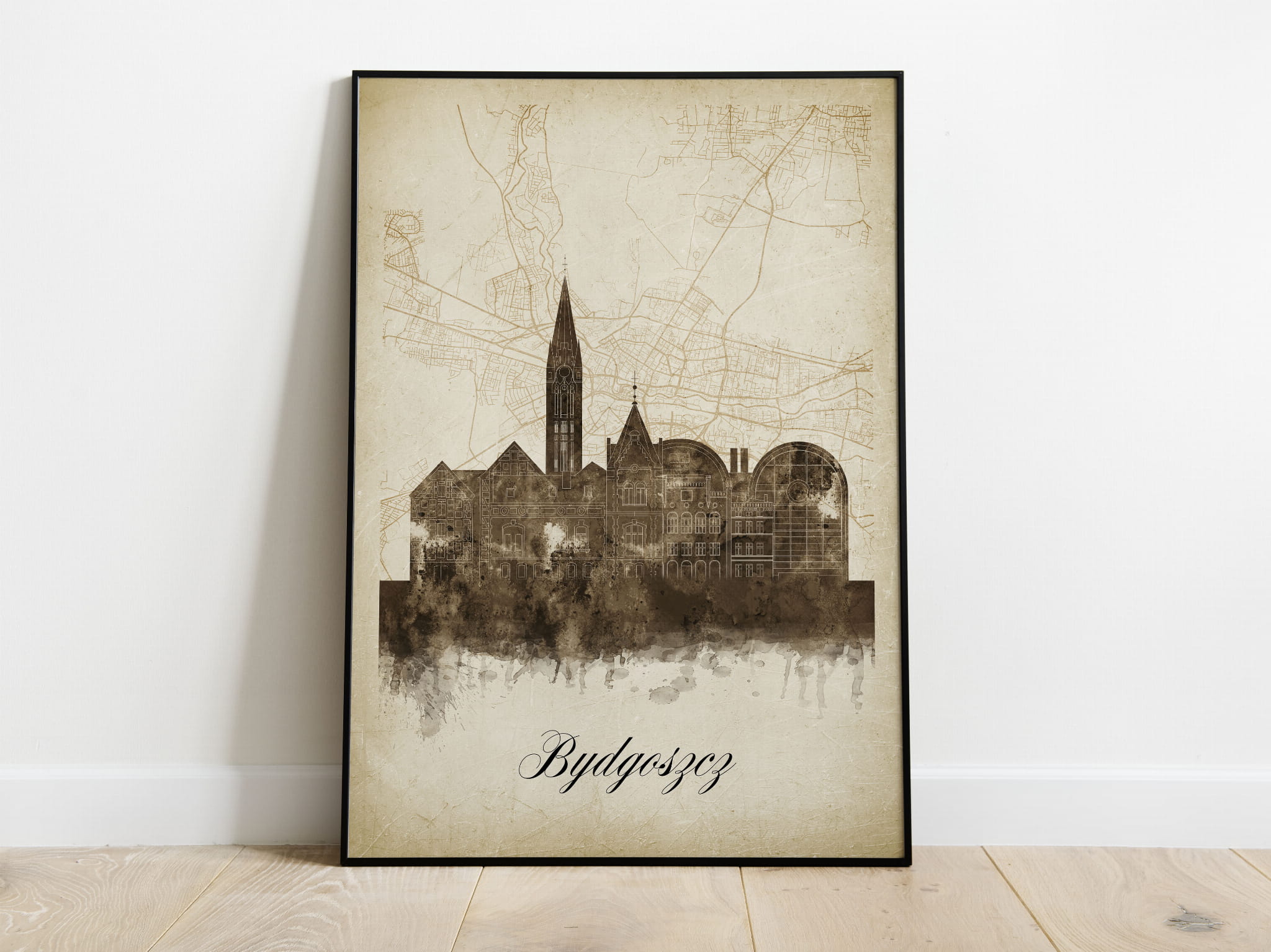 Plakat Skylines Bydgoszcz w stylu Vintage- Pionowy, Styl akwarelowy