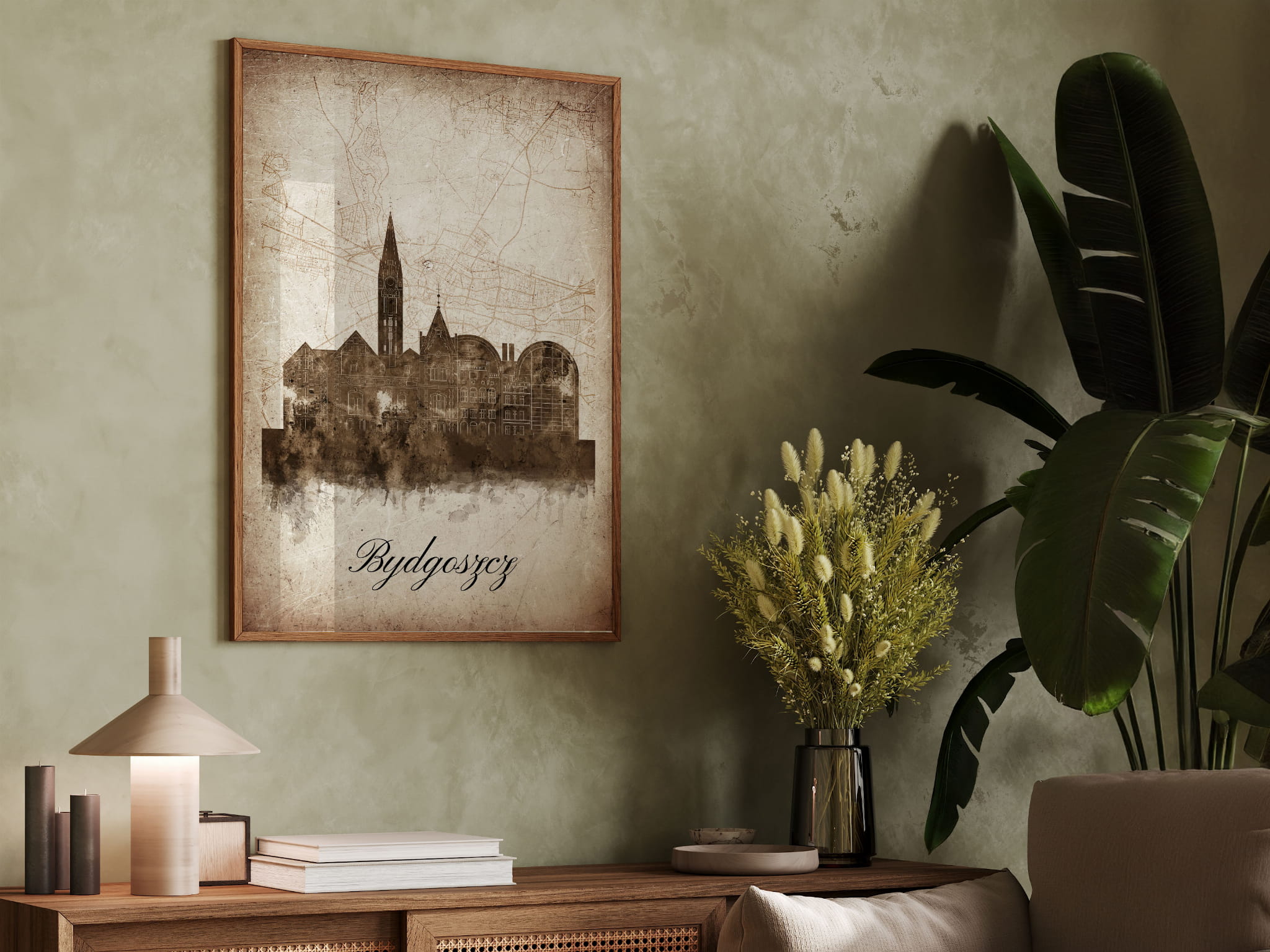 Plakat Skylines Bydgoszcz w stylu Vintage- Pionowy, Styl akwarelowy