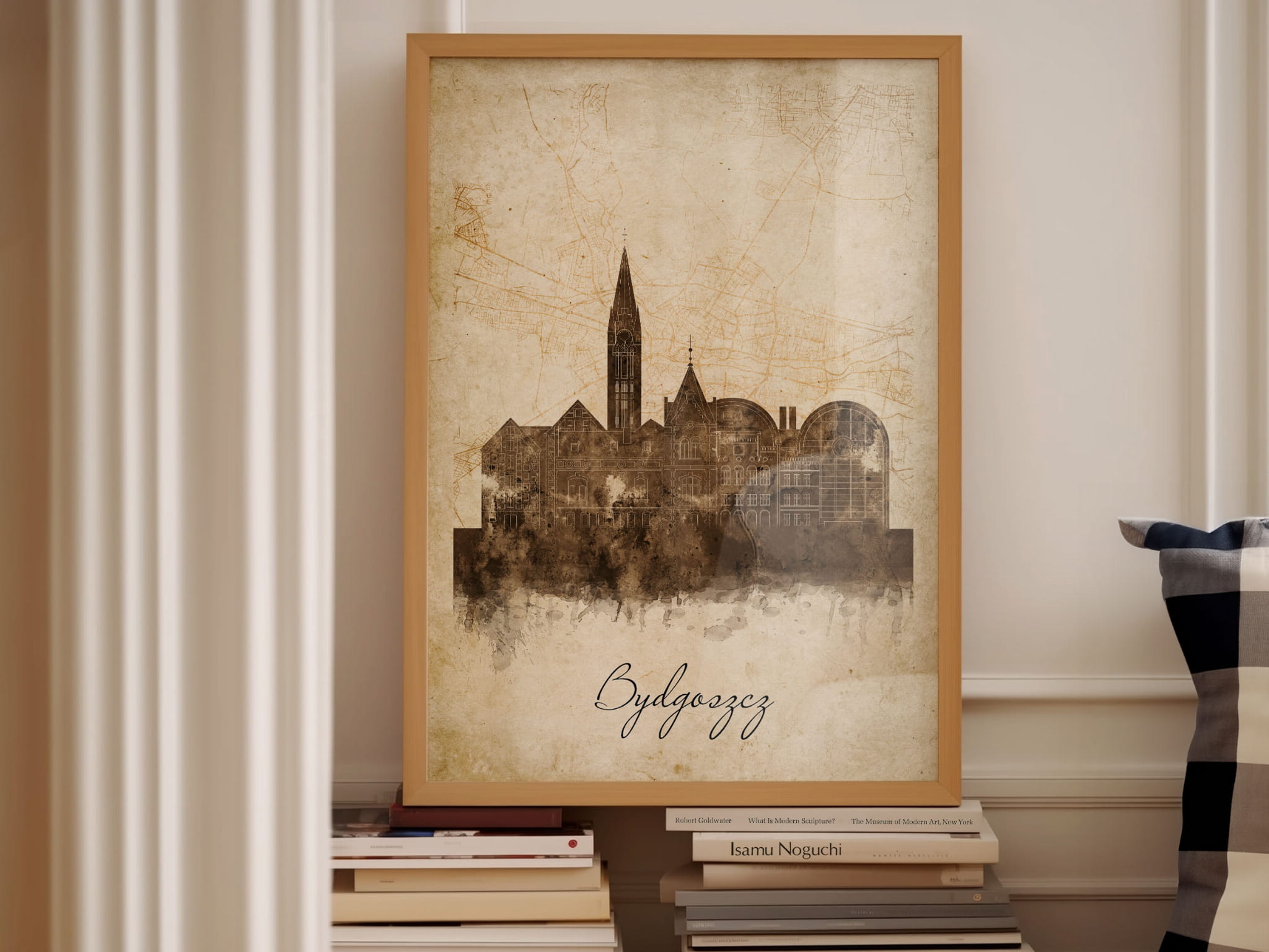 Plakaty skyline w stylu vintage to nowoczesne dzieła sztuki, które nawiązują do estetyki minionych dekad. Przedstawiają miejskie krajobrazy w retro kolorystyce, z wyblakłymi barwami i z delikatną patyną czasu. Kontury są często zmiękczone, a szczegóły budynków lekko stylizowane, co dodaje im nostalgicznego uroku. Tła plakatów utrzymane są w odcieniach przypominających stary papier, z subtelnymi teksturami i ciepłymi, przygaszonymi tonami. Całość tworzy elegancki i przytulny klimat, idealny do wnętrz, które łączą nowoczesność z klasycznym wdziękiem.