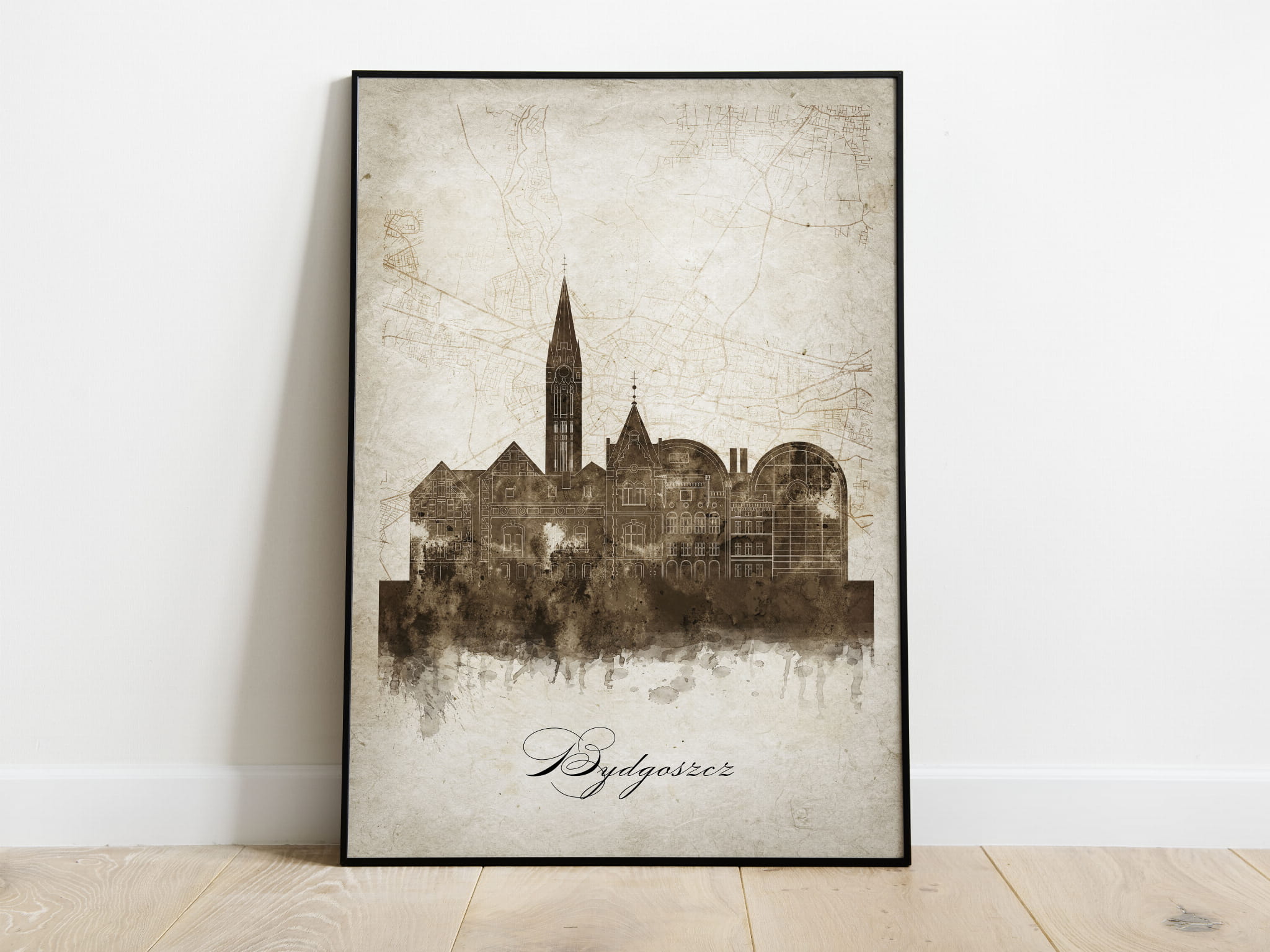 Plakat Skylines Bydgoszcz w stylu Vintage- Pionowy, Styl akwarelowy