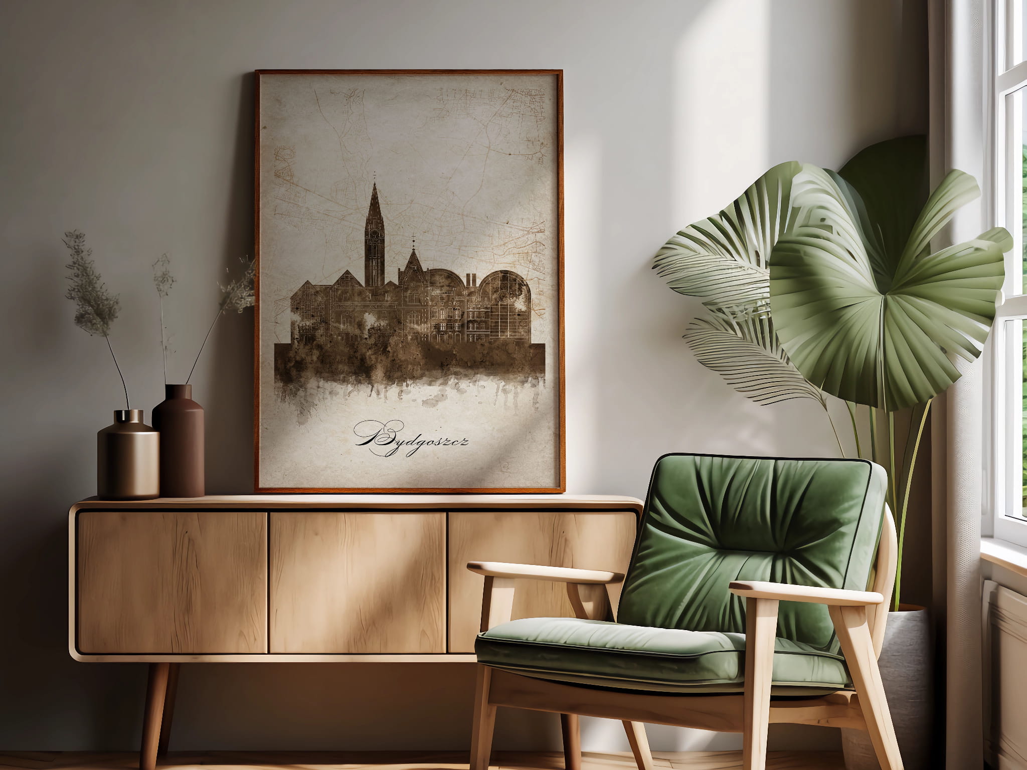 Plakaty skyline w stylu vintage to nowoczesne dzieła sztuki, które nawiązują do estetyki minionych dekad. Przedstawiają miejskie krajobrazy w retro kolorystyce, z wyblakłymi barwami i z delikatną patyną czasu. Kontury są często zmiękczone, a szczegóły budynków lekko stylizowane, co dodaje im nostalgicznego uroku. Tła plakatów utrzymane są w odcieniach przypominających stary papier, z subtelnymi teksturami i ciepłymi, przygaszonymi tonami. Całość tworzy elegancki i przytulny klimat, idealny do wnętrz, które łączą nowoczesność z klasycznym wdziękiem.