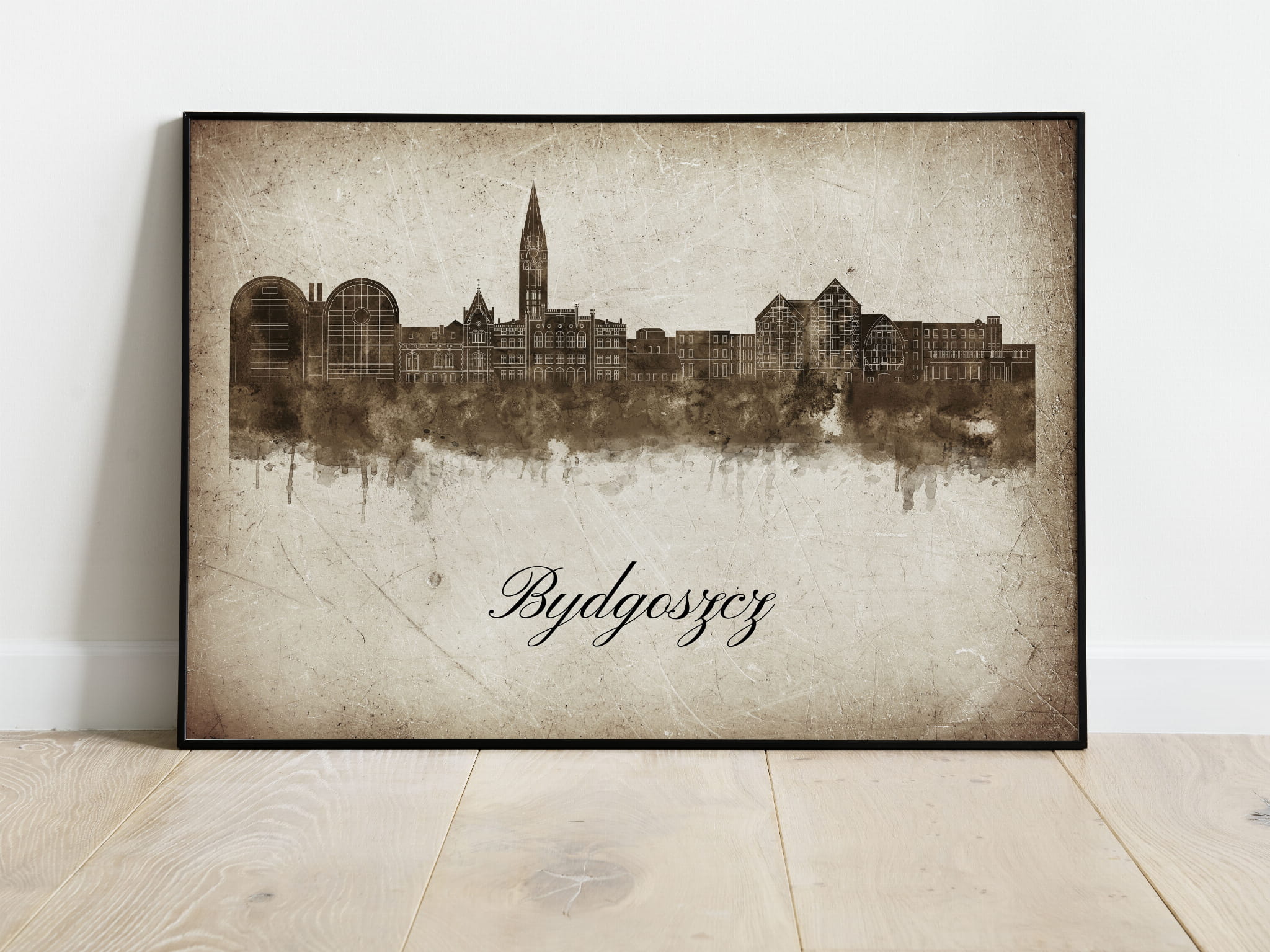 Plakat Skylines Bydgoszcz w stylu Vintage- Poziomy