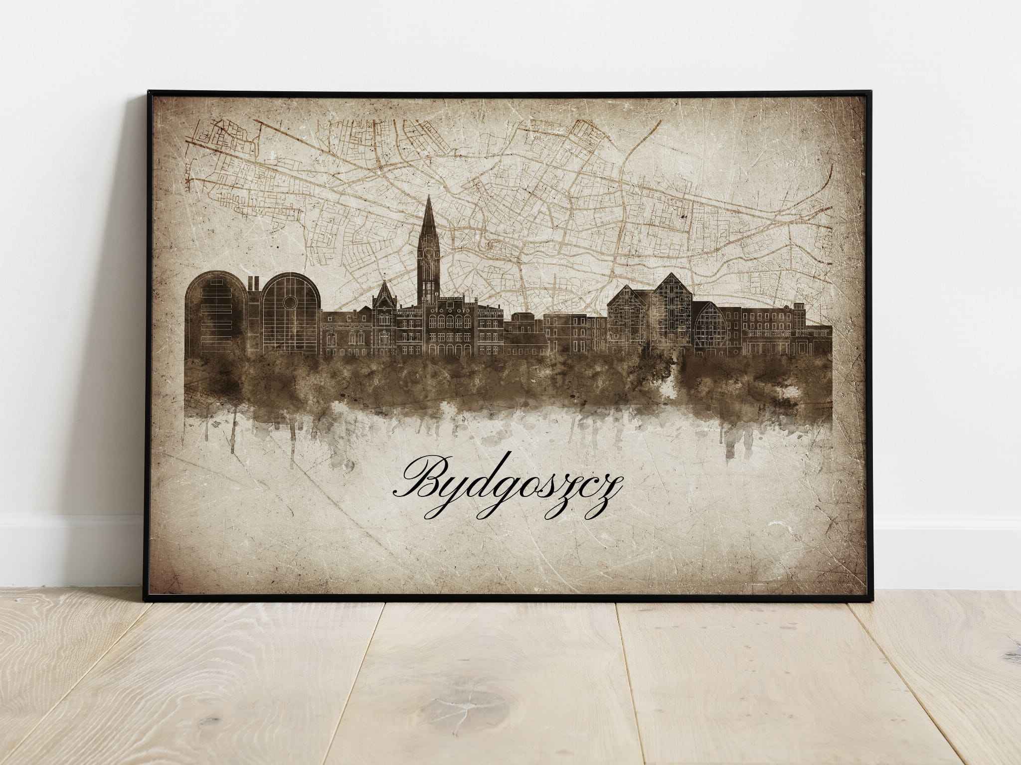 Plakat Skylines Bydgoszcz w stylu Vintage- Poziomy