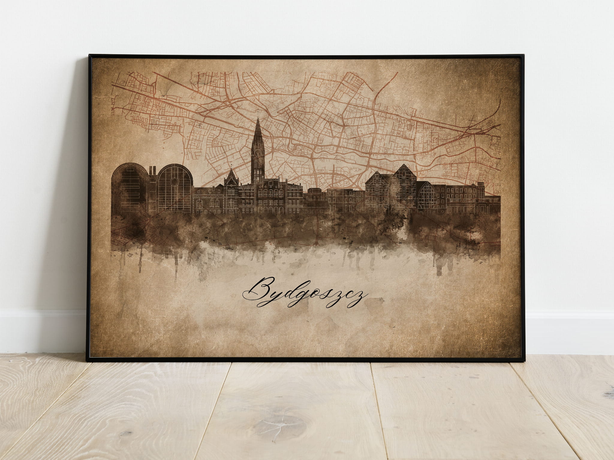 Plakaty skyline w stylu vintage to nowoczesne dzieła sztuki, które nawiązują do estetyki minionych dekad. Przedstawiają miejskie krajobrazy w retro kolorystyce, z wyblakłymi barwami i z delikatną patyną czasu. Kontury są często zmiękczone, a szczegóły budynków lekko stylizowane, co dodaje im nostalgicznego uroku. Tła plakatów utrzymane są w odcieniach przypominających stary papier, z subtelnymi teksturami i ciepłymi, przygaszonymi tonami. Całość tworzy elegancki i przytulny klimat, idealny do wnętrz, które łączą nowoczesność z klasycznym wdziękiem.