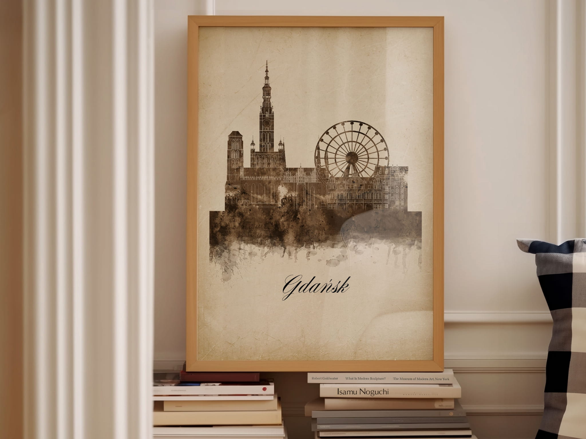 Plakaty skyline w stylu vintage to nowoczesne dzieła sztuki, które nawiązują do estetyki minionych dekad. Przedstawiają miejskie krajobrazy w retro kolorystyce, z wyblakłymi barwami i z delikatną patyną czasu. Kontury są często zmiękczone, a szczegóły budynków lekko stylizowane, co dodaje im nostalgicznego uroku. Tła plakatów utrzymane są w odcieniach przypominających stary papier, z subtelnymi teksturami i ciepłymi, przygaszonymi tonami. Całość tworzy elegancki i przytulny klimat, idealny do wnętrz, które łączą nowoczesność z klasycznym wdziękiem.