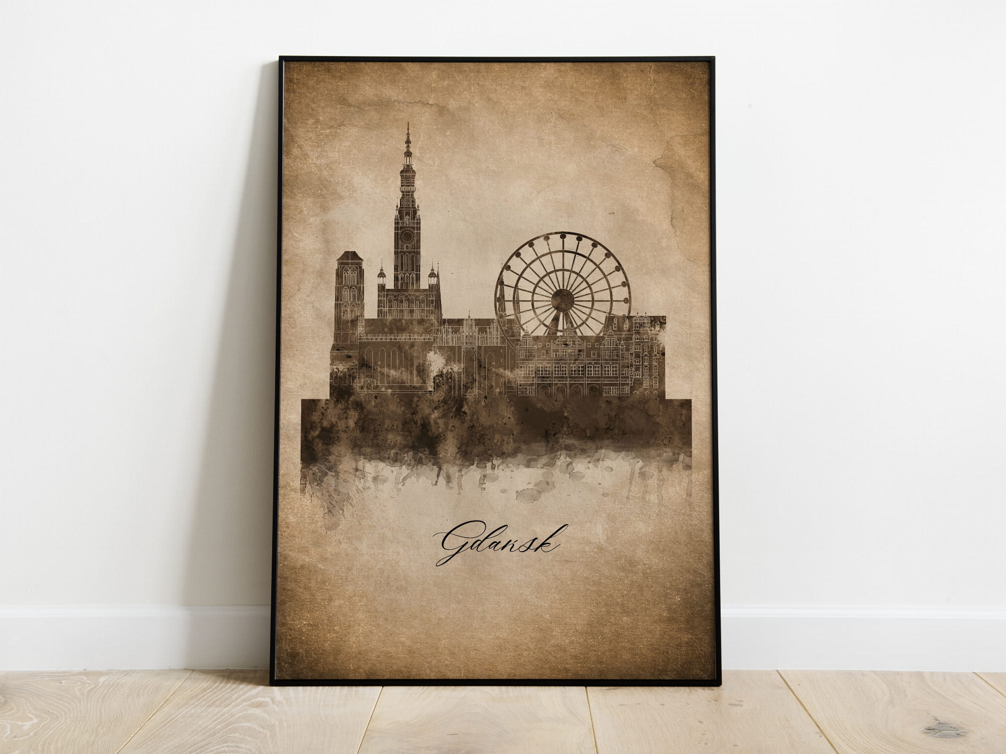 Plakat Skylines Gdańsk w stylu Vintage- Pionowy, Styl akwarelowy