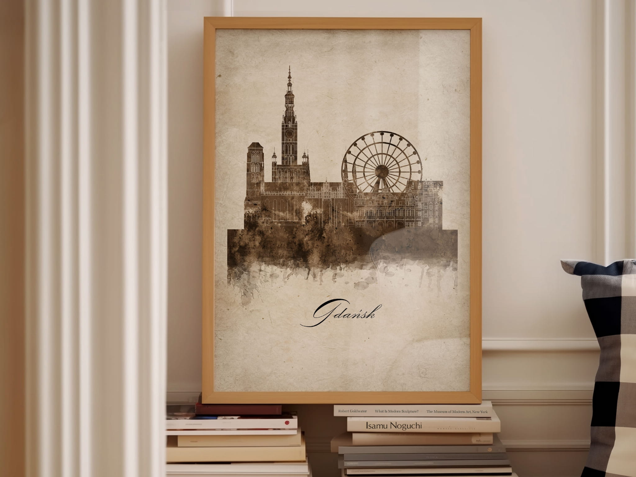 Plakaty skyline w stylu vintage to nowoczesne dzieła sztuki, które nawiązują do estetyki minionych dekad. Przedstawiają miejskie krajobrazy w retro kolorystyce, z wyblakłymi barwami i z delikatną patyną czasu. Kontury są często zmiękczone, a szczegóły budynków lekko stylizowane, co dodaje im nostalgicznego uroku. Tła plakatów utrzymane są w odcieniach przypominających stary papier, z subtelnymi teksturami i ciepłymi, przygaszonymi tonami. Całość tworzy elegancki i przytulny klimat, idealny do wnętrz, które łączą nowoczesność z klasycznym wdziękiem.