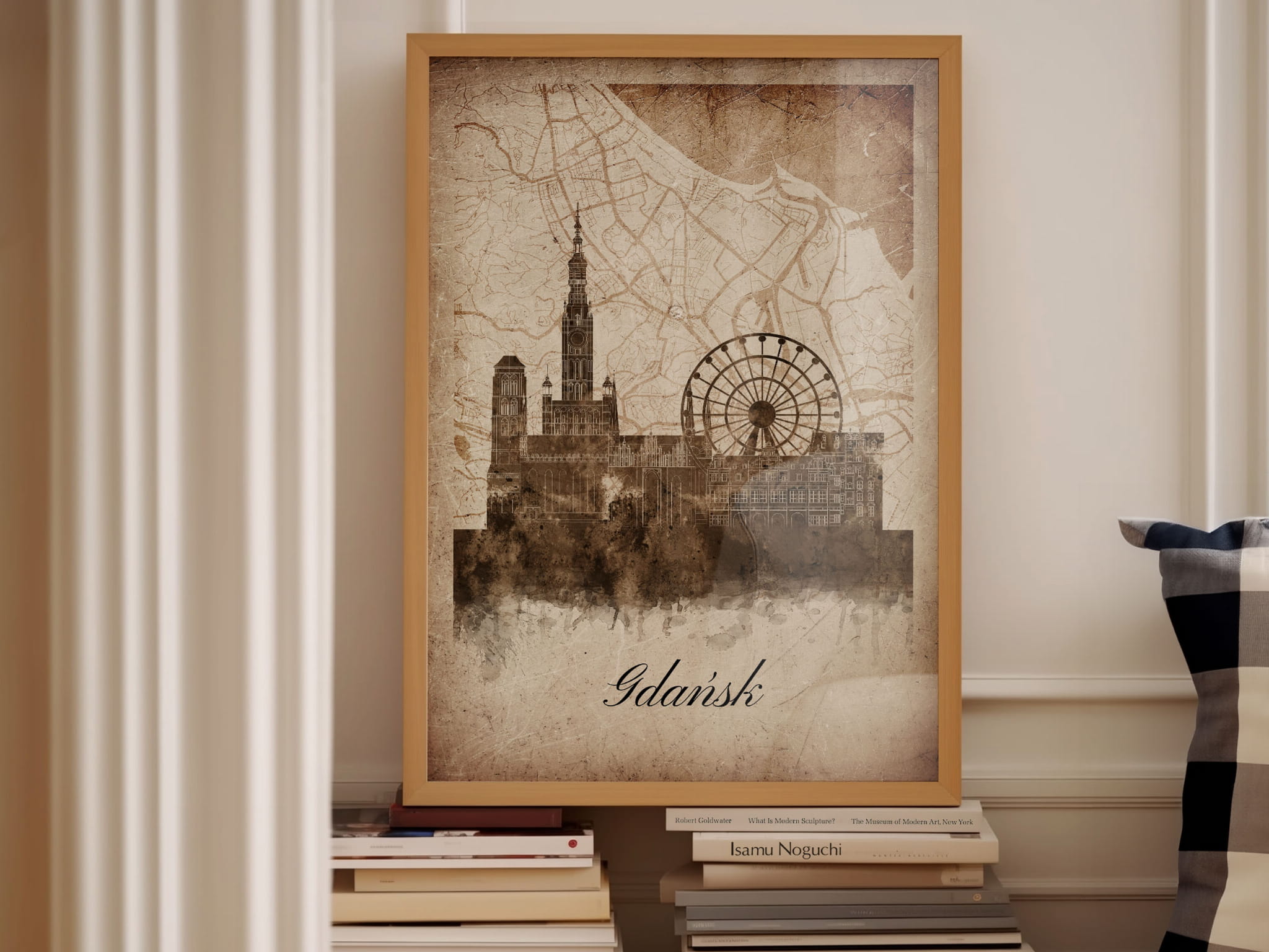 Plakat Skylines Gdańsk w stylu Vintage- Pionowy, Styl akwarelowy