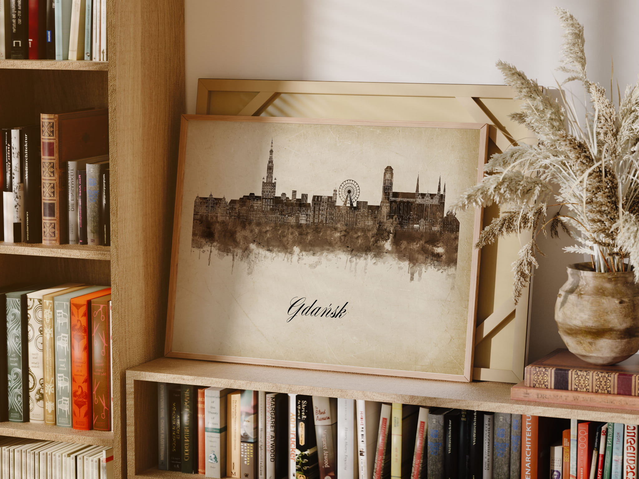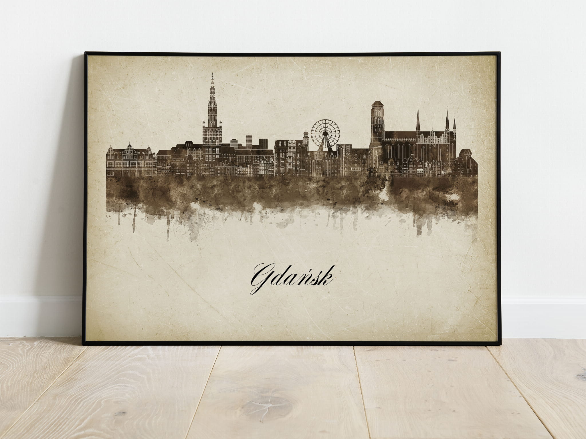 Plakaty skyline w stylu vintage to nowoczesne dzieła sztuki, które nawiązują do estetyki minionych dekad. Przedstawiają miejskie krajobrazy w retro kolorystyce, z wyblakłymi barwami i z delikatną patyną czasu. Kontury są często zmiękczone, a szczegóły budynków lekko stylizowane, co dodaje im nostalgicznego uroku. Tła plakatów utrzymane są w odcieniach przypominających stary papier, z subtelnymi teksturami i ciepłymi, przygaszonymi tonami. Całość tworzy elegancki i przytulny klimat, idealny do wnętrz, które łączą nowoczesność z klasycznym wdziękiem.