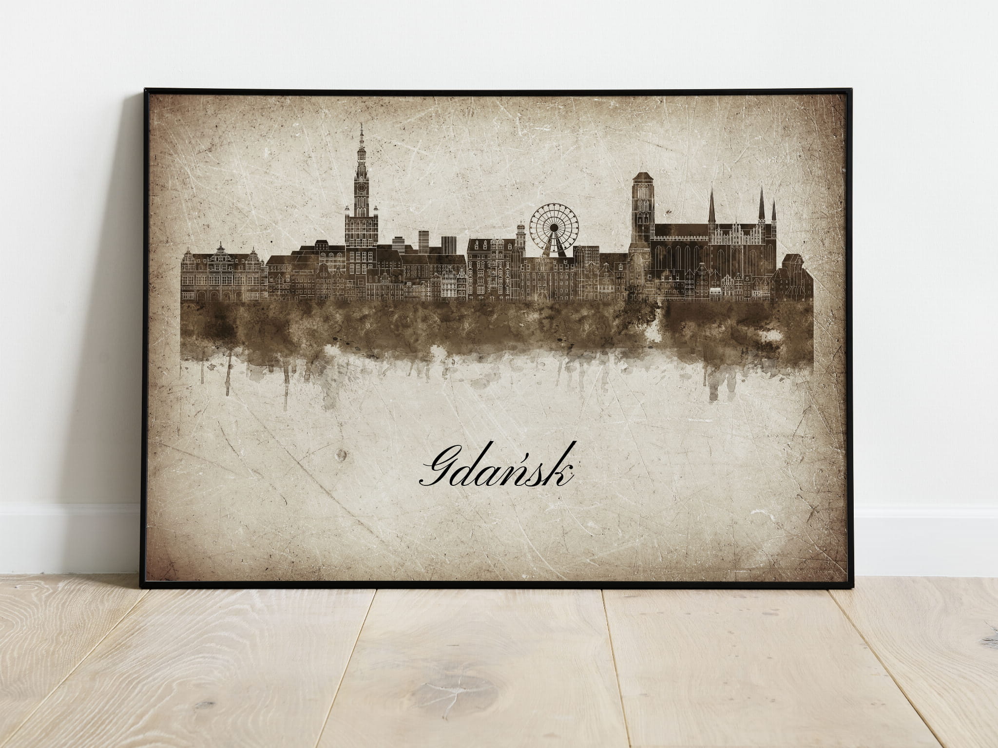 Plakat Skylines Gdańsk w stylu Vintage- Poziomy