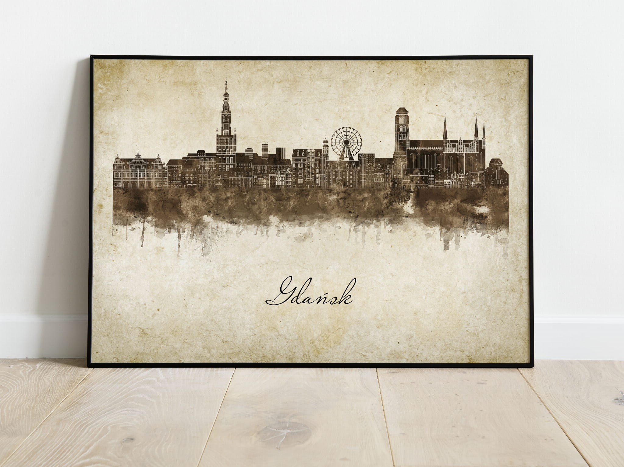 Plakat Skylines Gdańsk w stylu Vintage- Poziomy