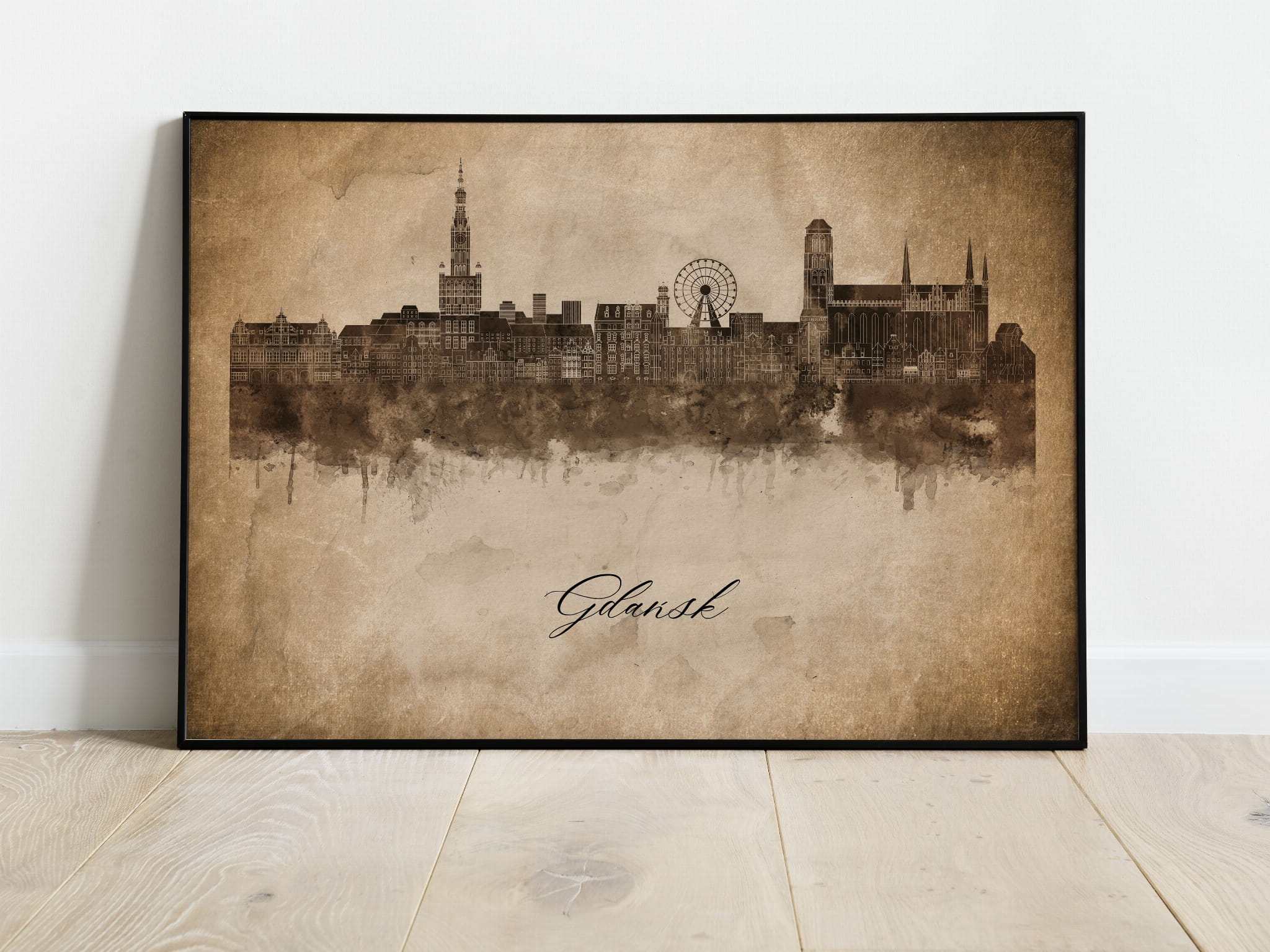 Plakat Skylines Gdańsk w stylu Vintage- Poziomy