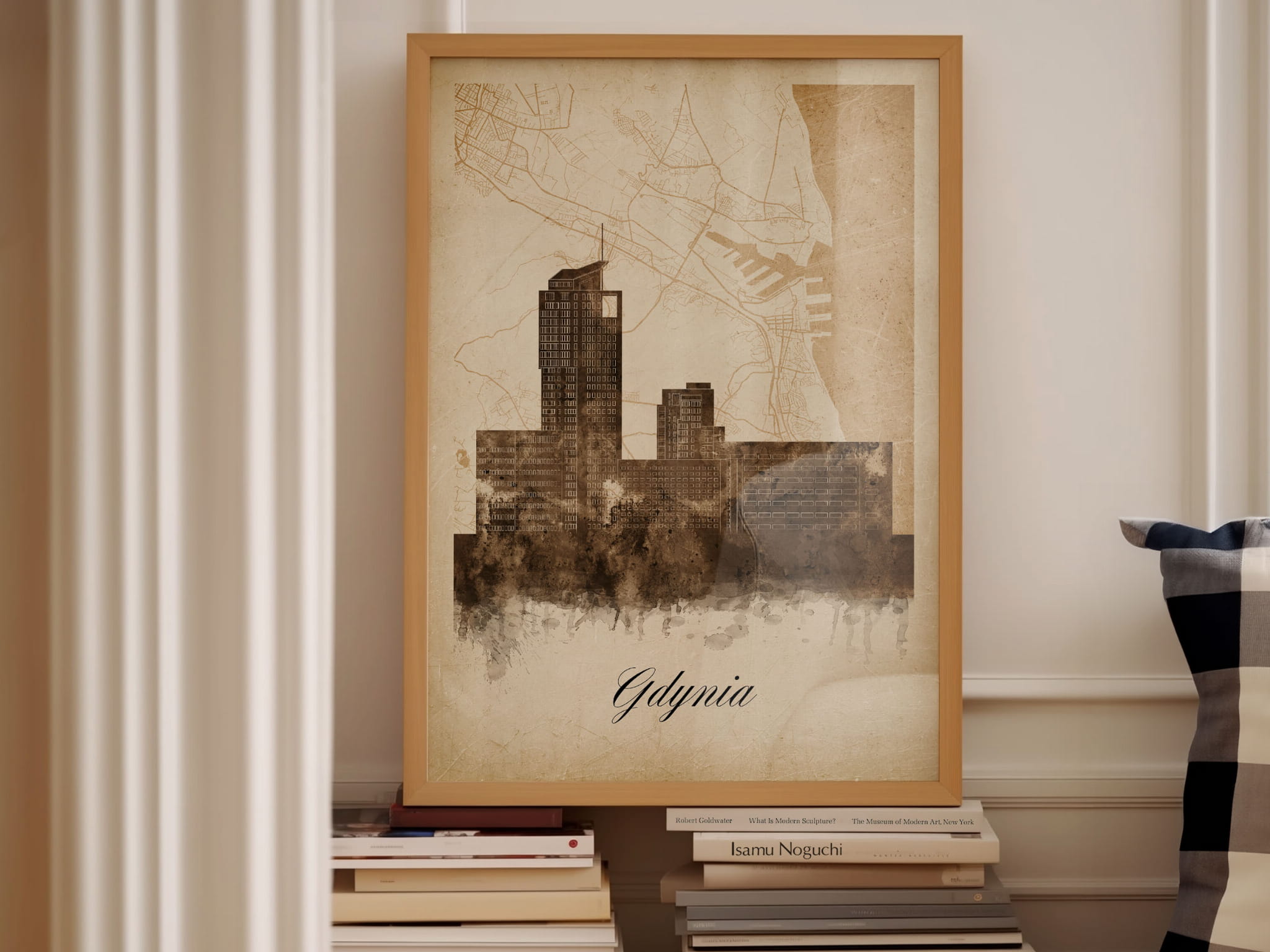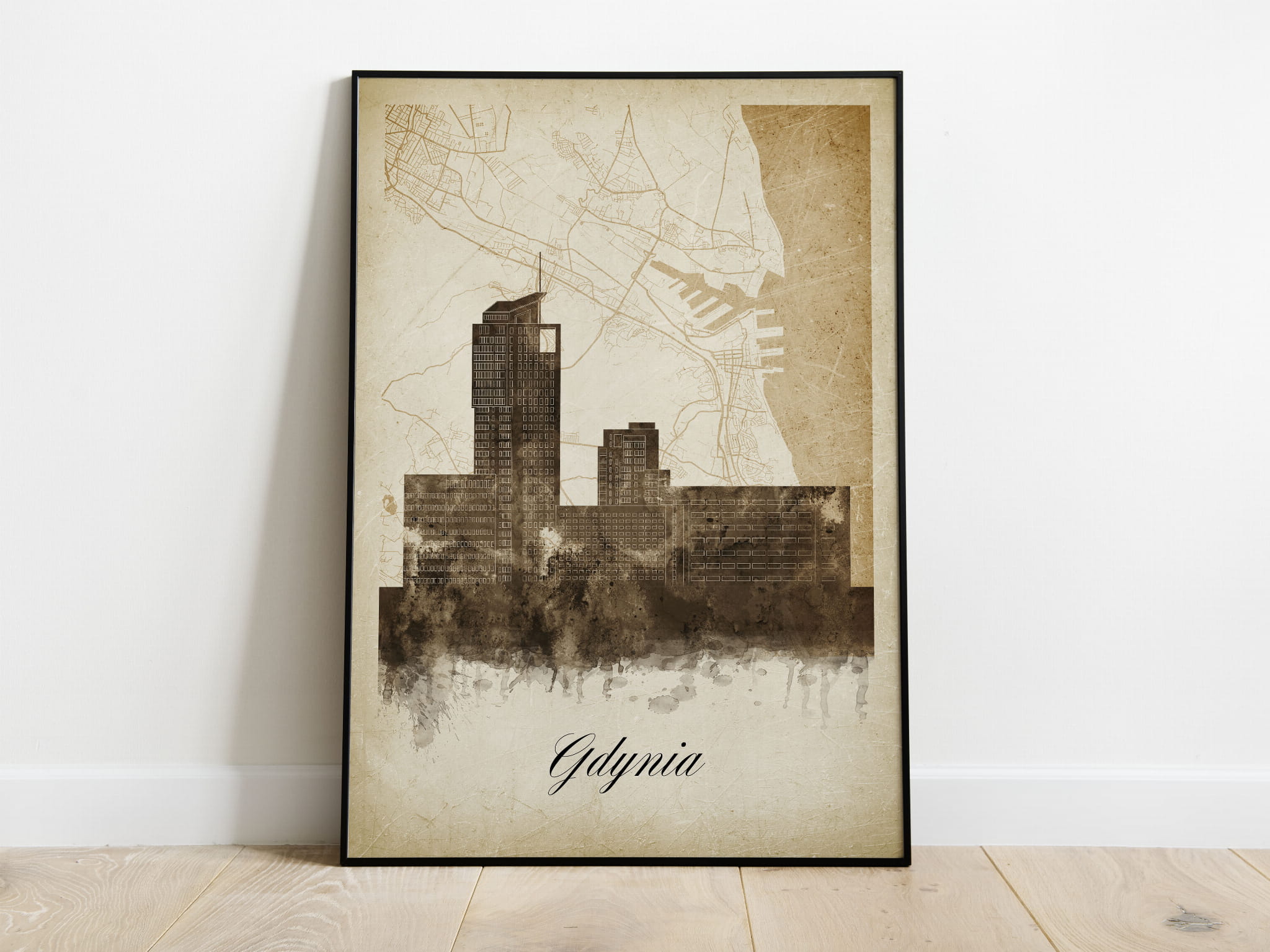 Plakat Skylines Gdynia w stylu Vintage- Pionowy, Styl akwarelowy