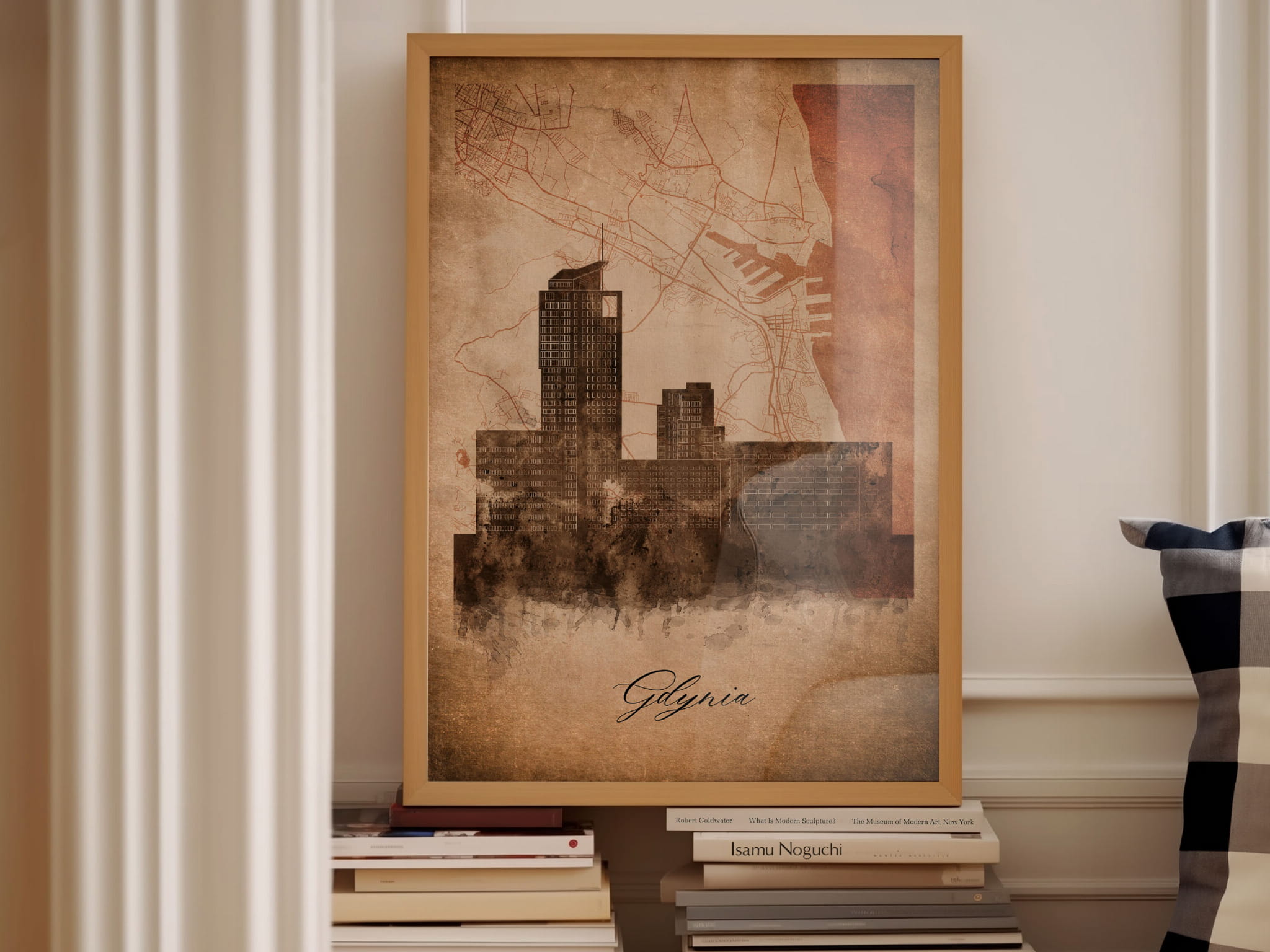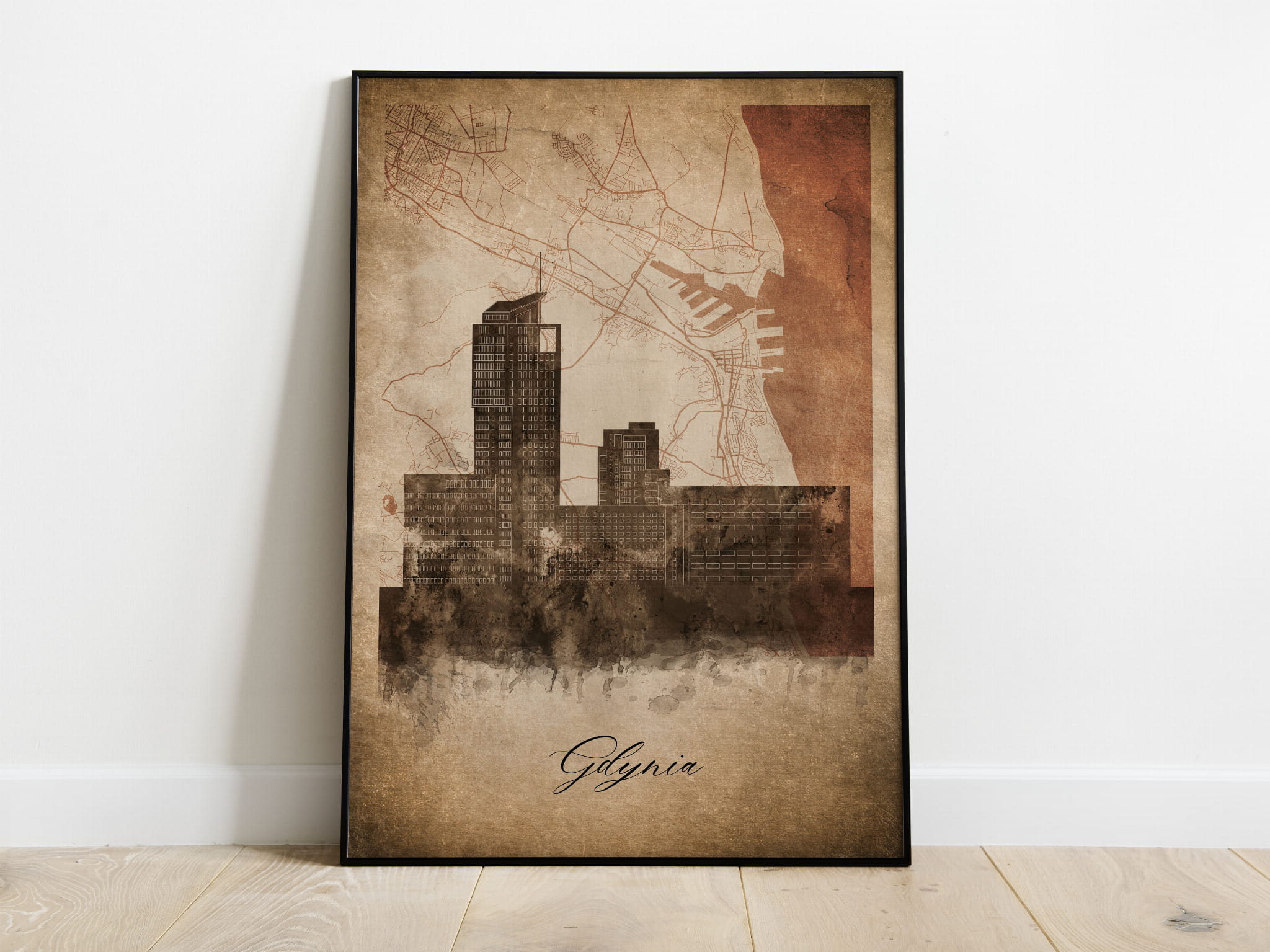 Plakat Skylines Gdynia w stylu Vintage- Pionowy, Styl akwarelowy