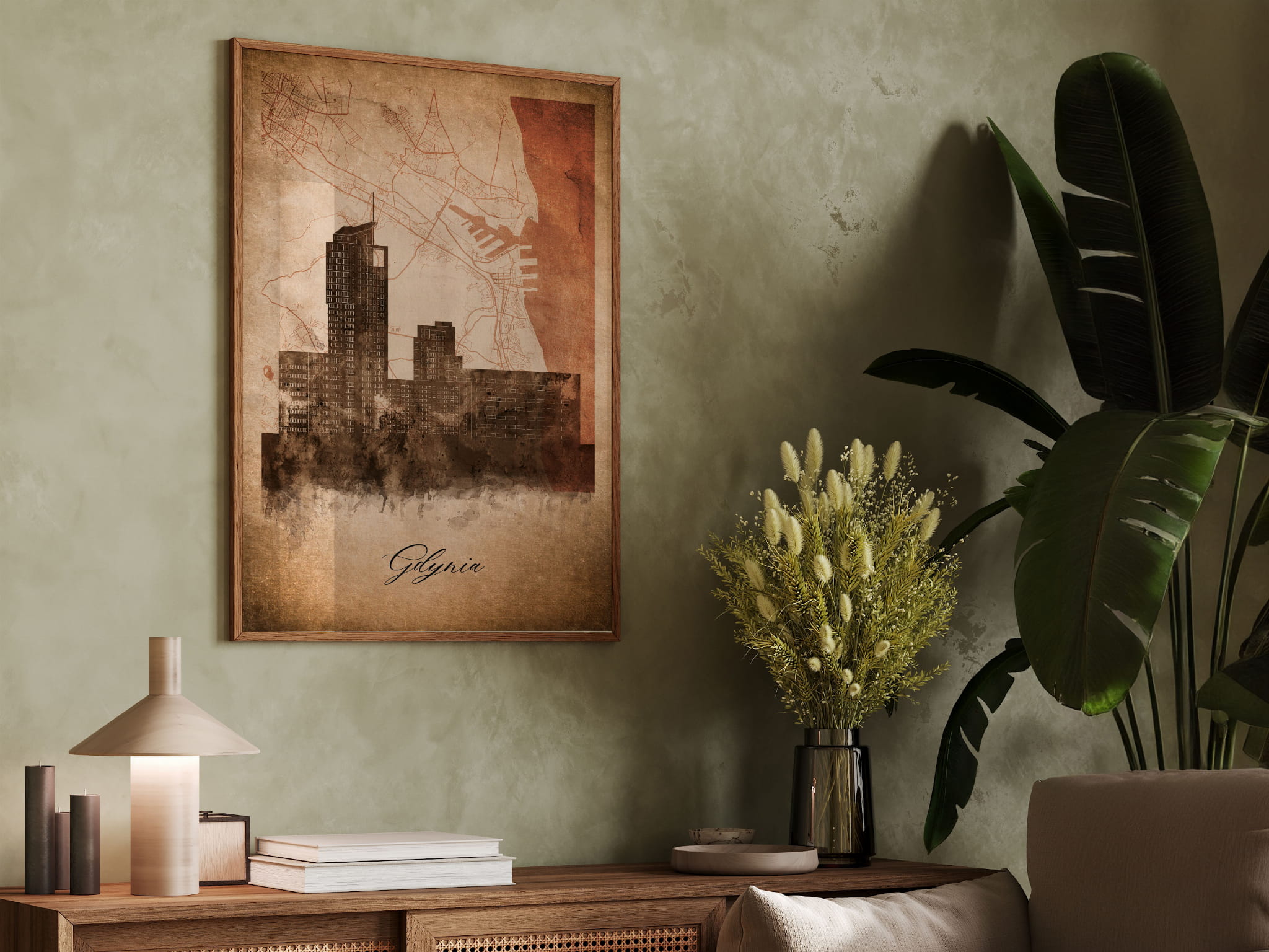 Plakaty skyline w stylu vintage to nowoczesne dzieła sztuki, które nawiązują do estetyki minionych dekad. Przedstawiają miejskie krajobrazy w retro kolorystyce, z wyblakłymi barwami i z delikatną patyną czasu. Kontury są często zmiękczone, a szczegóły budynków lekko stylizowane, co dodaje im nostalgicznego uroku. Tła plakatów utrzymane są w odcieniach przypominających stary papier, z subtelnymi teksturami i ciepłymi, przygaszonymi tonami. Całość tworzy elegancki i przytulny klimat, idealny do wnętrz, które łączą nowoczesność z klasycznym wdziękiem.
