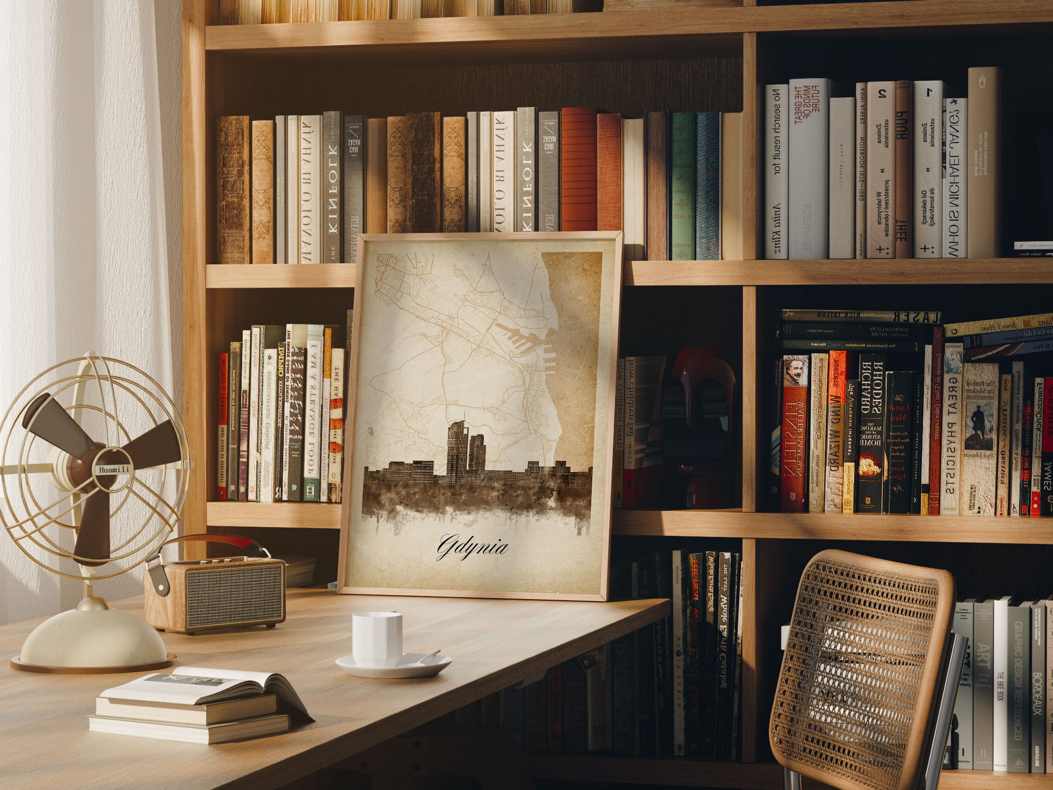Plakaty skyline w stylu vintage to nowoczesne dzieła sztuki, które nawiązują do estetyki minionych dekad. Przedstawiają miejskie krajobrazy w retro kolorystyce, z wyblakłymi barwami i z delikatną patyną czasu. Kontury są często zmiękczone, a szczegóły budynków lekko stylizowane, co dodaje im nostalgicznego uroku. Tła plakatów utrzymane są w odcieniach przypominających stary papier, z subtelnymi teksturami i ciepłymi, przygaszonymi tonami. Całość tworzy elegancki i przytulny klimat, idealny do wnętrz, które łączą nowoczesność z klasycznym wdziękiem.