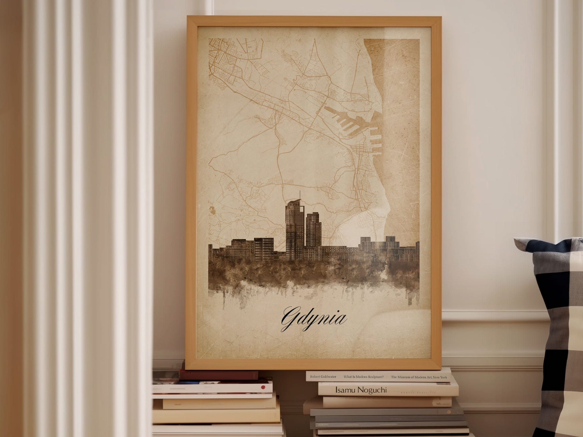 Plakat Skylines Gdynia w stylu Vintage- Pionowy