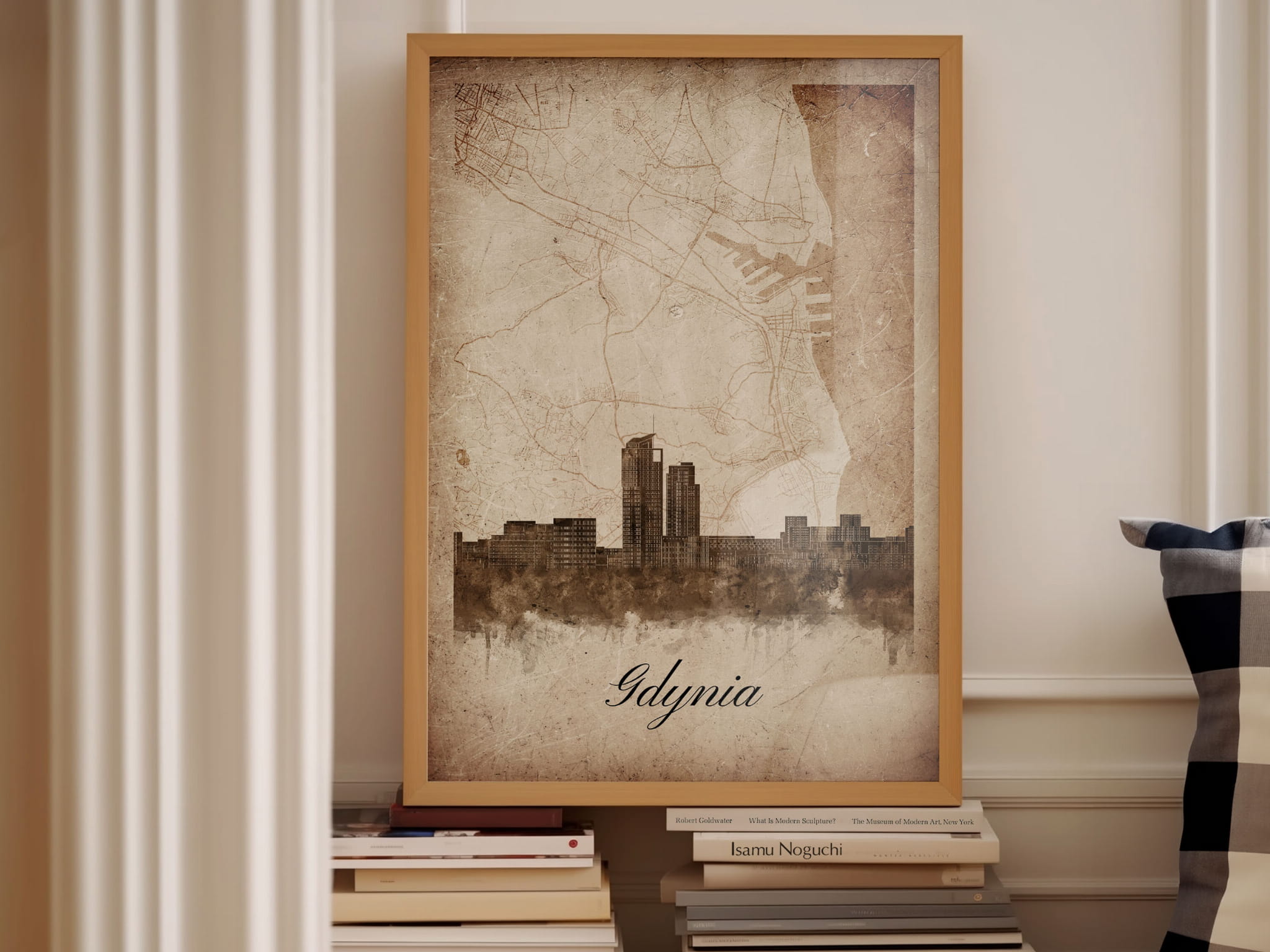 Plakat Skylines Gdynia w stylu Vintage- Pionowy