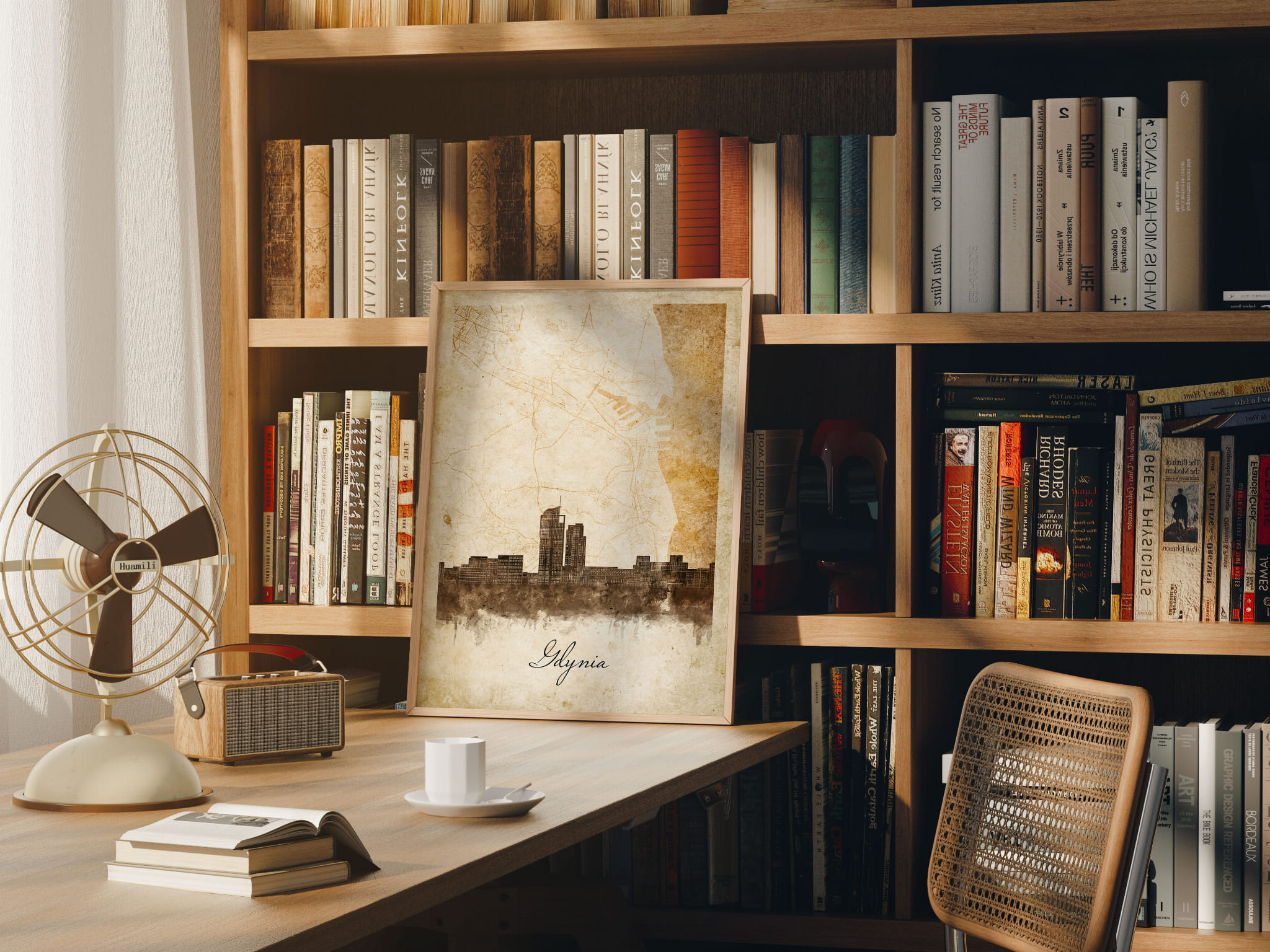 Plakaty skyline w stylu vintage to nowoczesne dzieła sztuki, które nawiązują do estetyki minionych dekad. Przedstawiają miejskie krajobrazy w retro kolorystyce, z wyblakłymi barwami i z delikatną patyną czasu. Kontury są często zmiękczone, a szczegóły budynków lekko stylizowane, co dodaje im nostalgicznego uroku. Tła plakatów utrzymane są w odcieniach przypominających stary papier, z subtelnymi teksturami i ciepłymi, przygaszonymi tonami. Całość tworzy elegancki i przytulny klimat, idealny do wnętrz, które łączą nowoczesność z klasycznym wdziękiem.