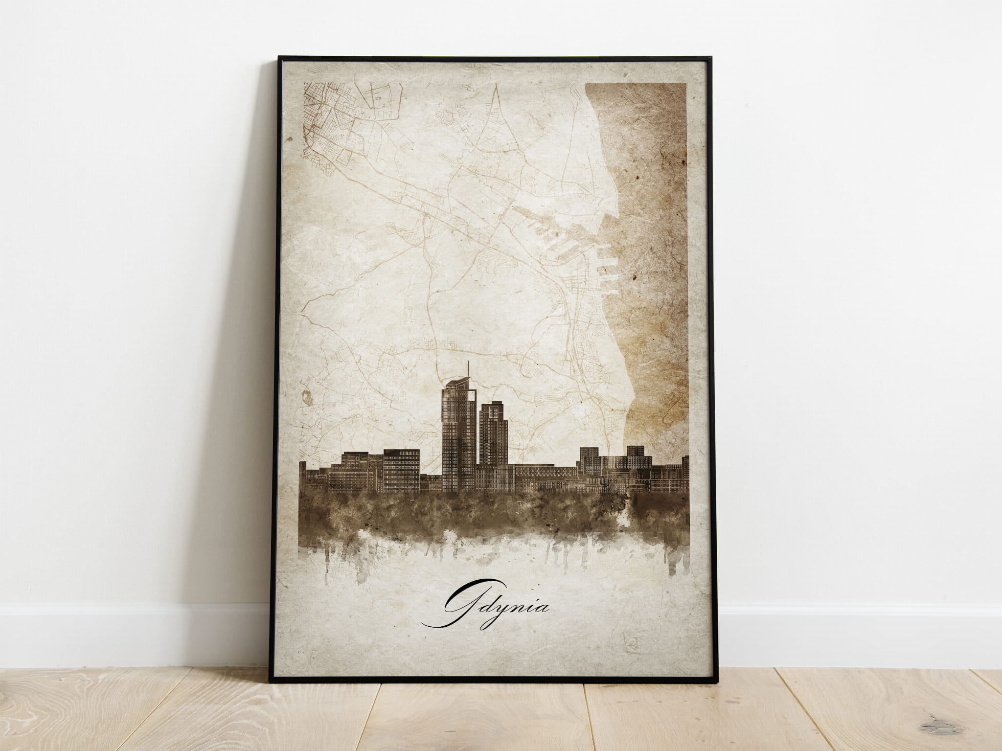 Plakat Skylines Gdynia w stylu Vintage- Pionowy