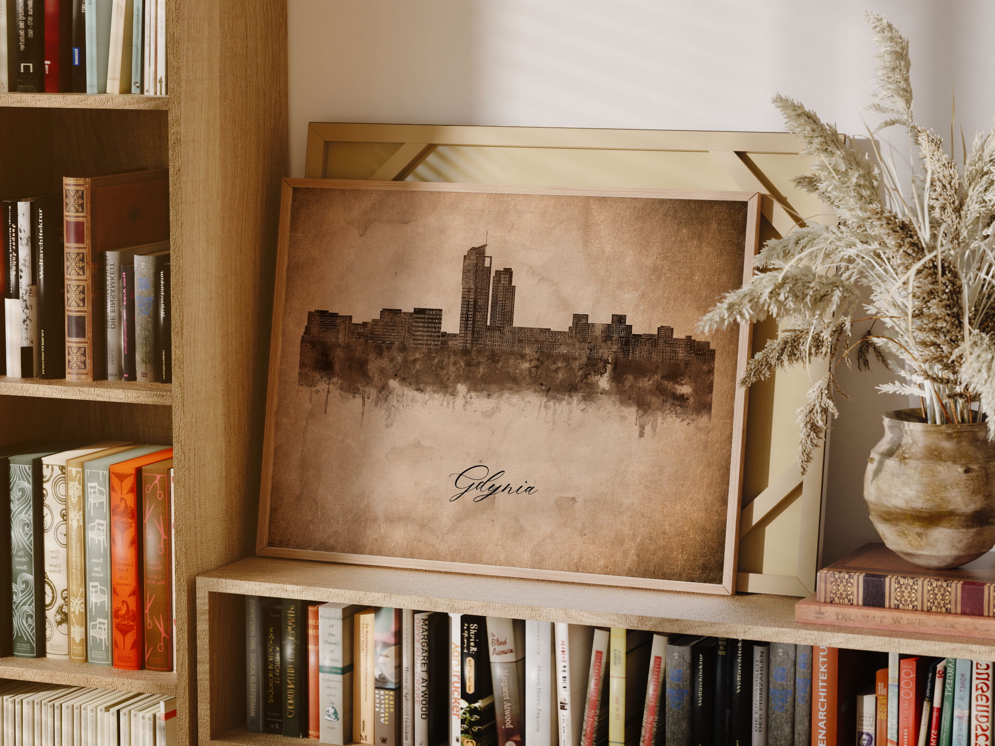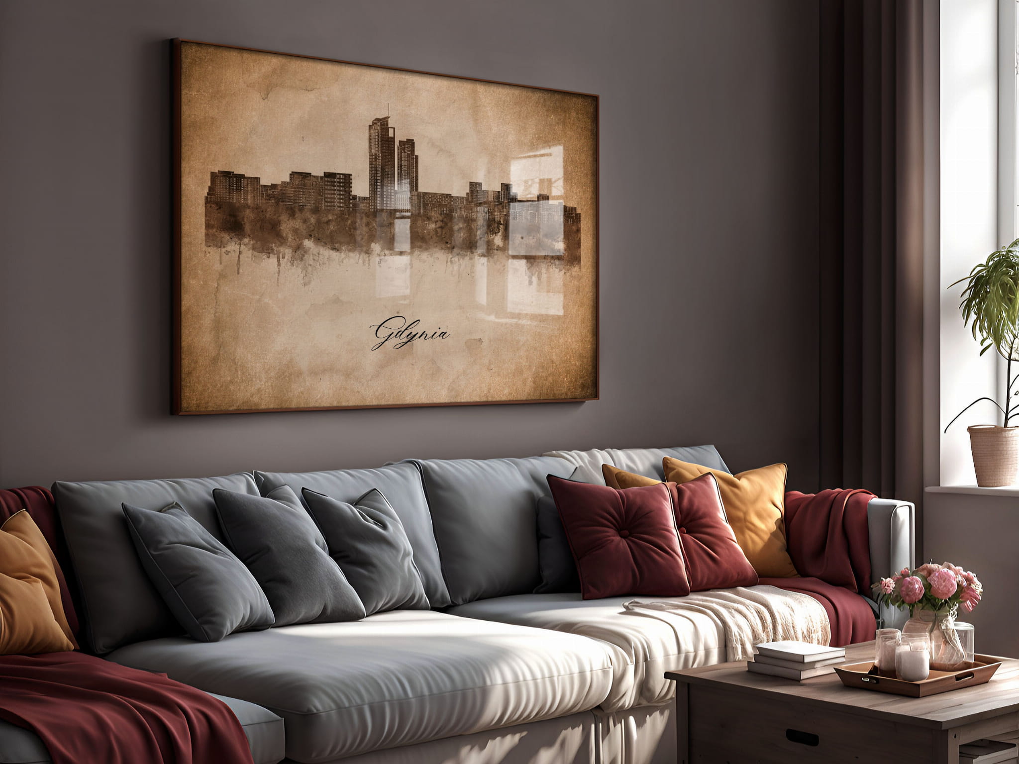 Plakaty skyline w stylu vintage to nowoczesne dzieła sztuki, które nawiązują do estetyki minionych dekad. Przedstawiają miejskie krajobrazy w retro kolorystyce, z wyblakłymi barwami i z delikatną patyną czasu. Kontury są często zmiękczone, a szczegóły budynków lekko stylizowane, co dodaje im nostalgicznego uroku. Tła plakatów utrzymane są w odcieniach przypominających stary papier, z subtelnymi teksturami i ciepłymi, przygaszonymi tonami. Całość tworzy elegancki i przytulny klimat, idealny do wnętrz, które łączą nowoczesność z klasycznym wdziękiem.
