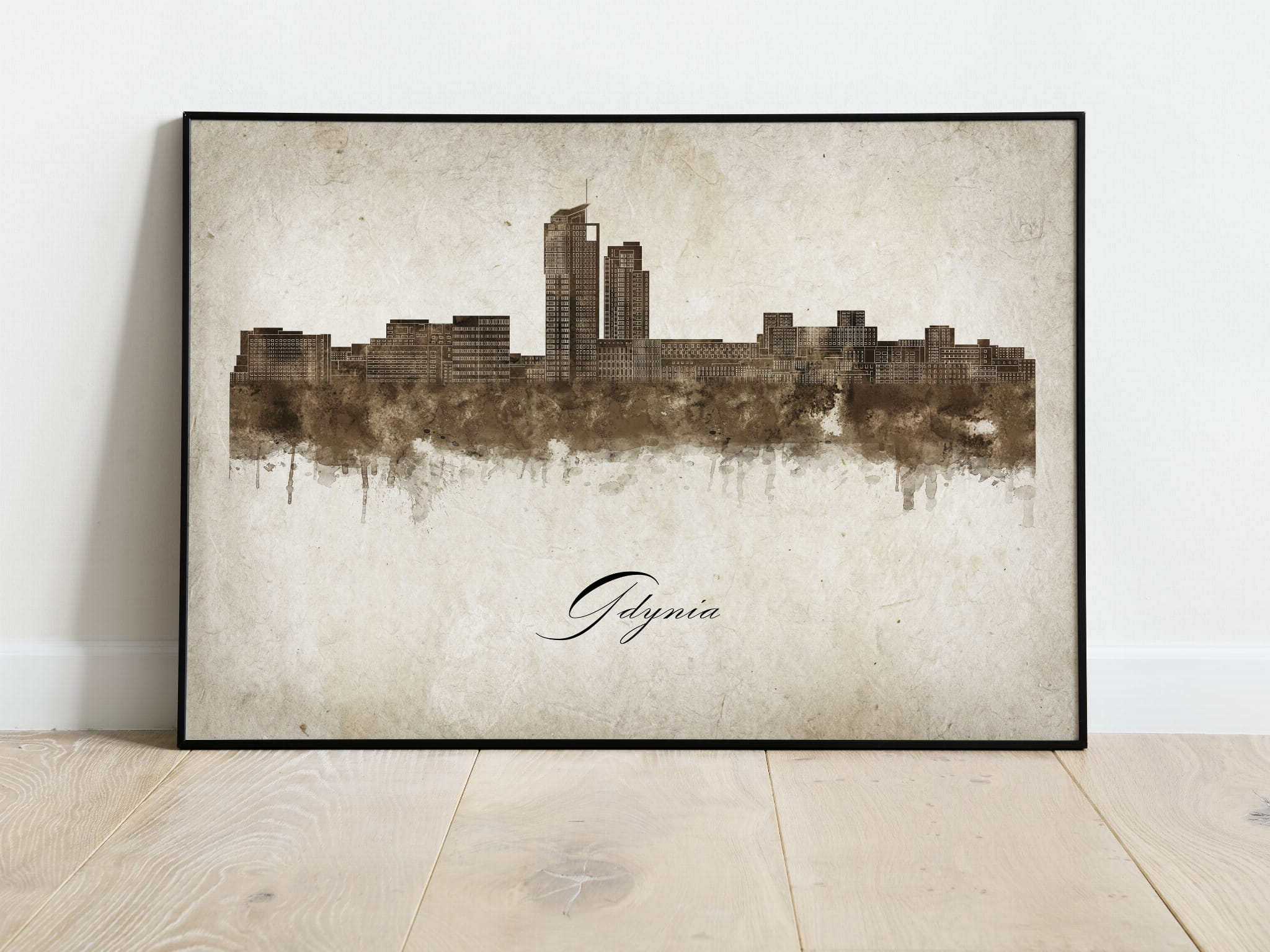 Plakat Skylines Gdynia w stylu Vintage- Poziomy