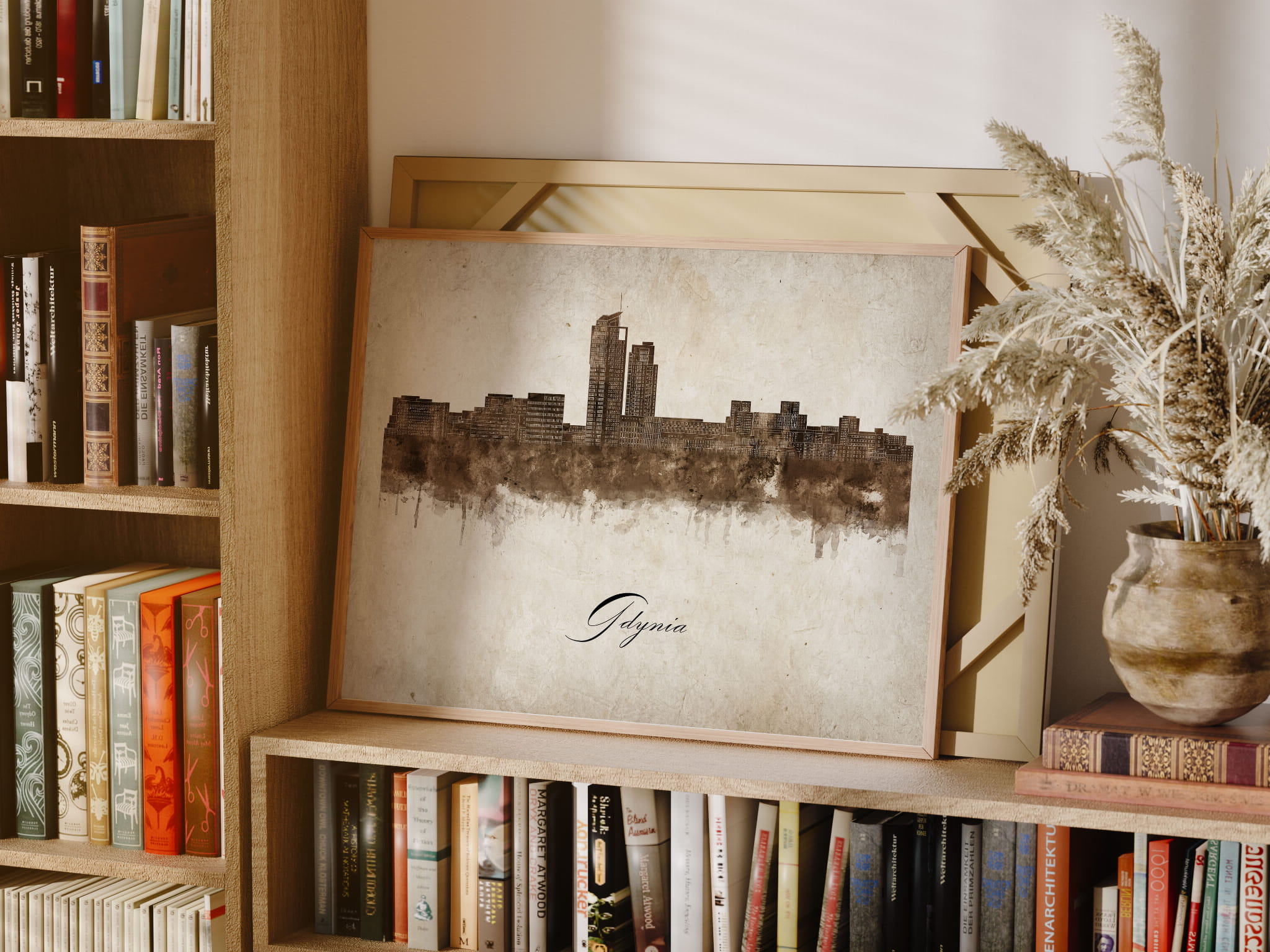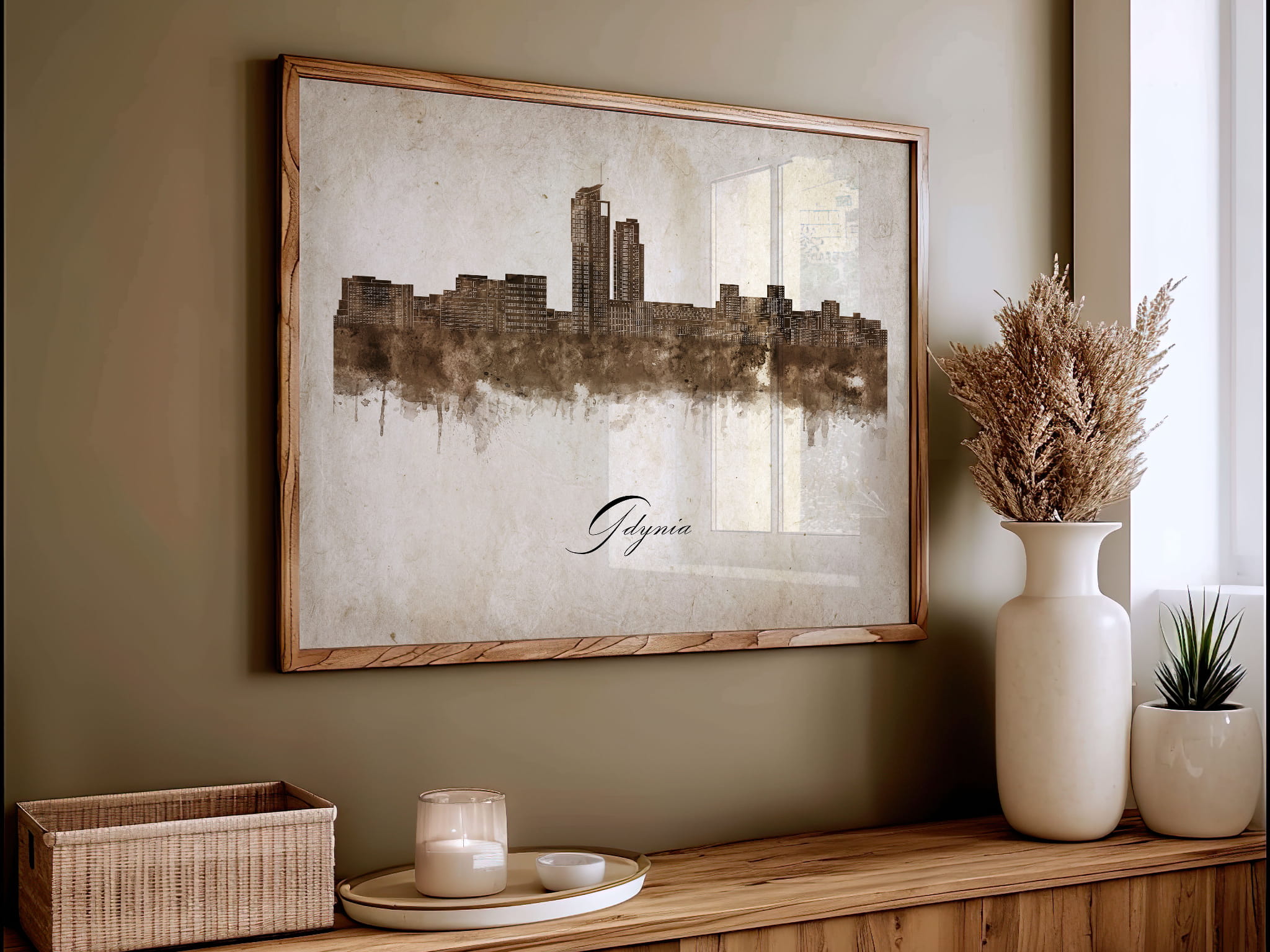 Plakaty skyline w stylu vintage to nowoczesne dzieła sztuki, które nawiązują do estetyki minionych dekad. Przedstawiają miejskie krajobrazy w retro kolorystyce, z wyblakłymi barwami i z delikatną patyną czasu. Kontury są często zmiękczone, a szczegóły budynków lekko stylizowane, co dodaje im nostalgicznego uroku. Tła plakatów utrzymane są w odcieniach przypominających stary papier, z subtelnymi teksturami i ciepłymi, przygaszonymi tonami. Całość tworzy elegancki i przytulny klimat, idealny do wnętrz, które łączą nowoczesność z klasycznym wdziękiem.