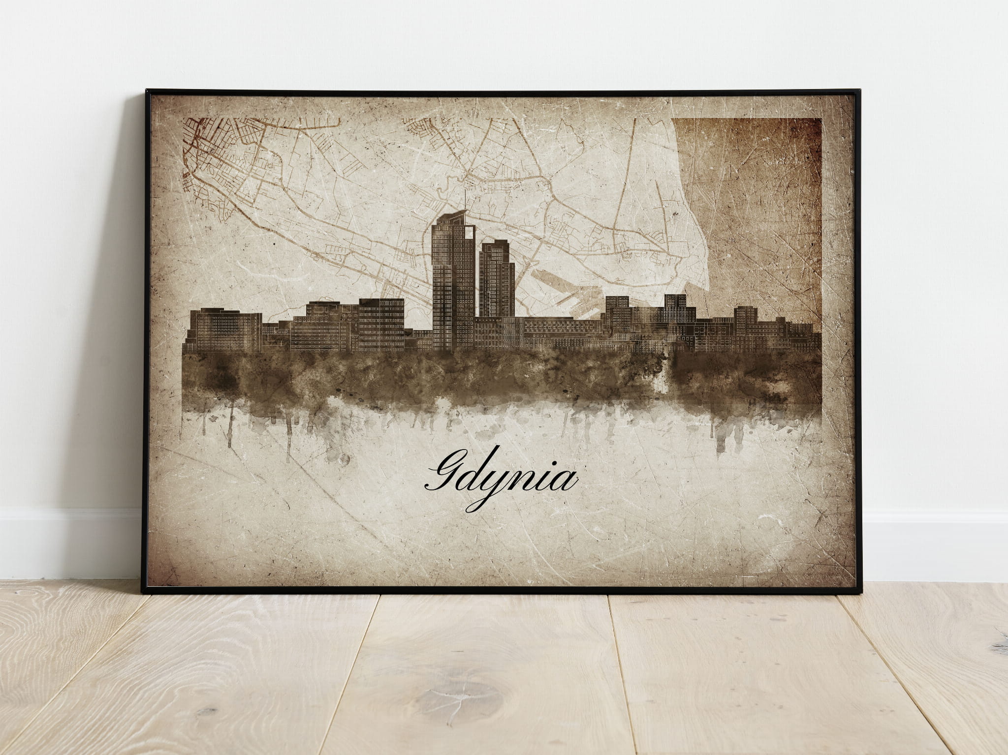 Plakat Skylines Gdynia w stylu Vintage- Poziomy