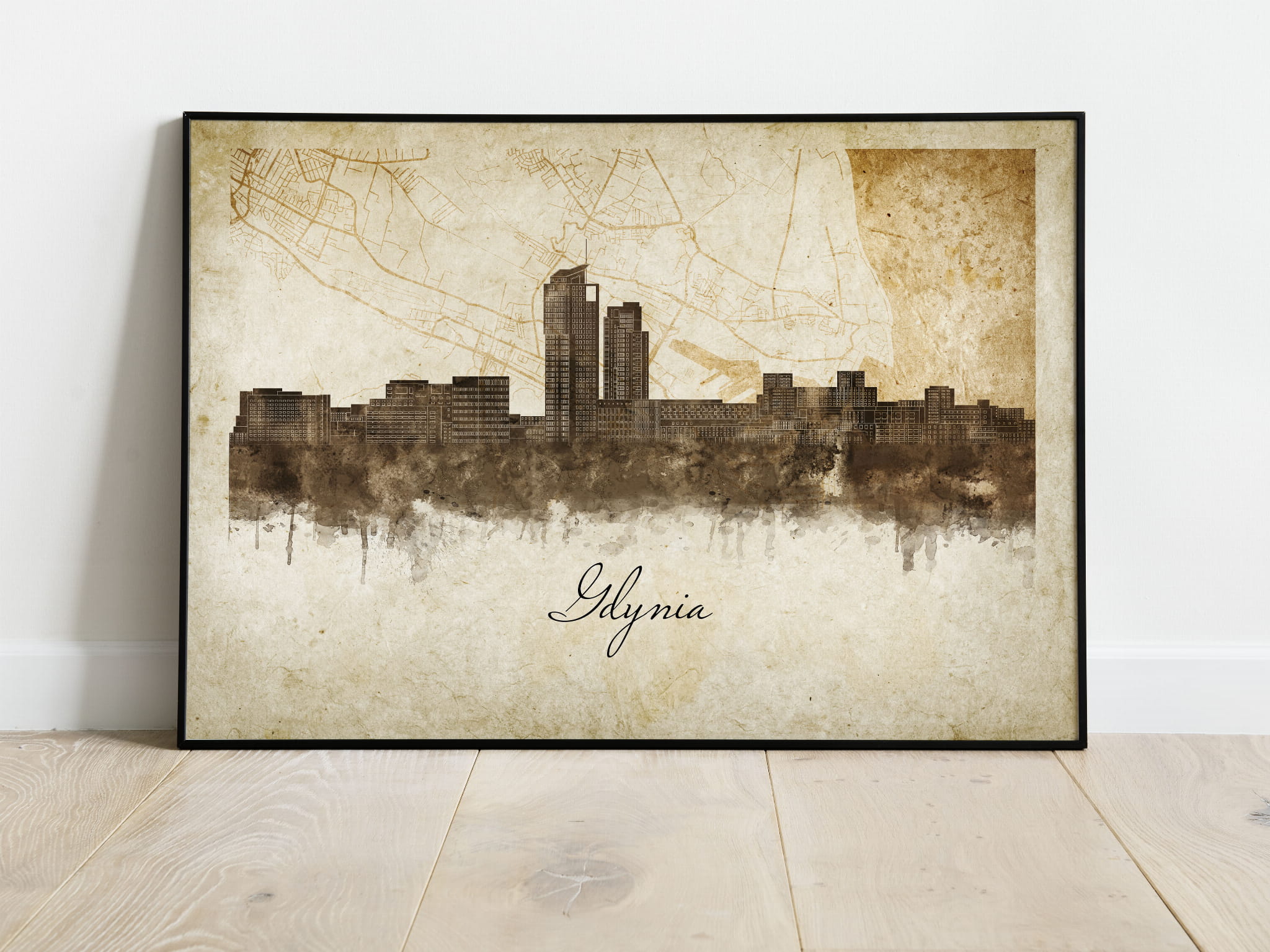 Plakat Skylines Gdynia w stylu Vintage- Poziomy