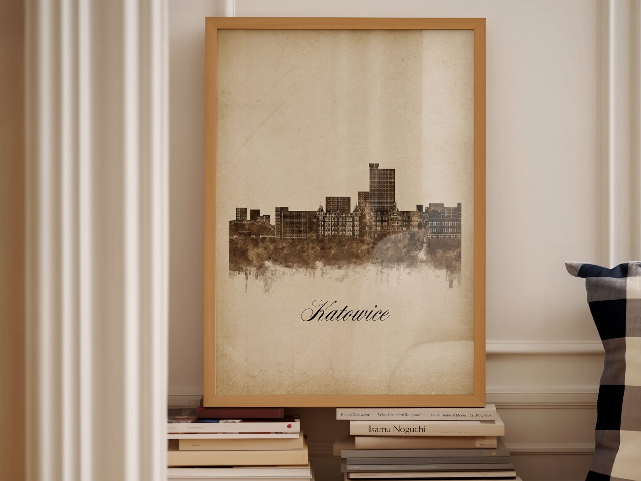 Plakaty skyline w stylu vintage to nowoczesne dzieła sztuki, które nawiązują do estetyki minionych dekad. Przedstawiają miejskie krajobrazy w retro kolorystyce, z wyblakłymi barwami i z delikatną patyną czasu. Kontury są często zmiękczone, a szczegóły budynków lekko stylizowane, co dodaje im nostalgicznego uroku. Tła plakatów utrzymane są w odcieniach przypominających stary papier, z subtelnymi teksturami i ciepłymi, przygaszonymi tonami. Całość tworzy elegancki i przytulny klimat, idealny do wnętrz, które łączą nowoczesność z klasycznym wdziękiem.