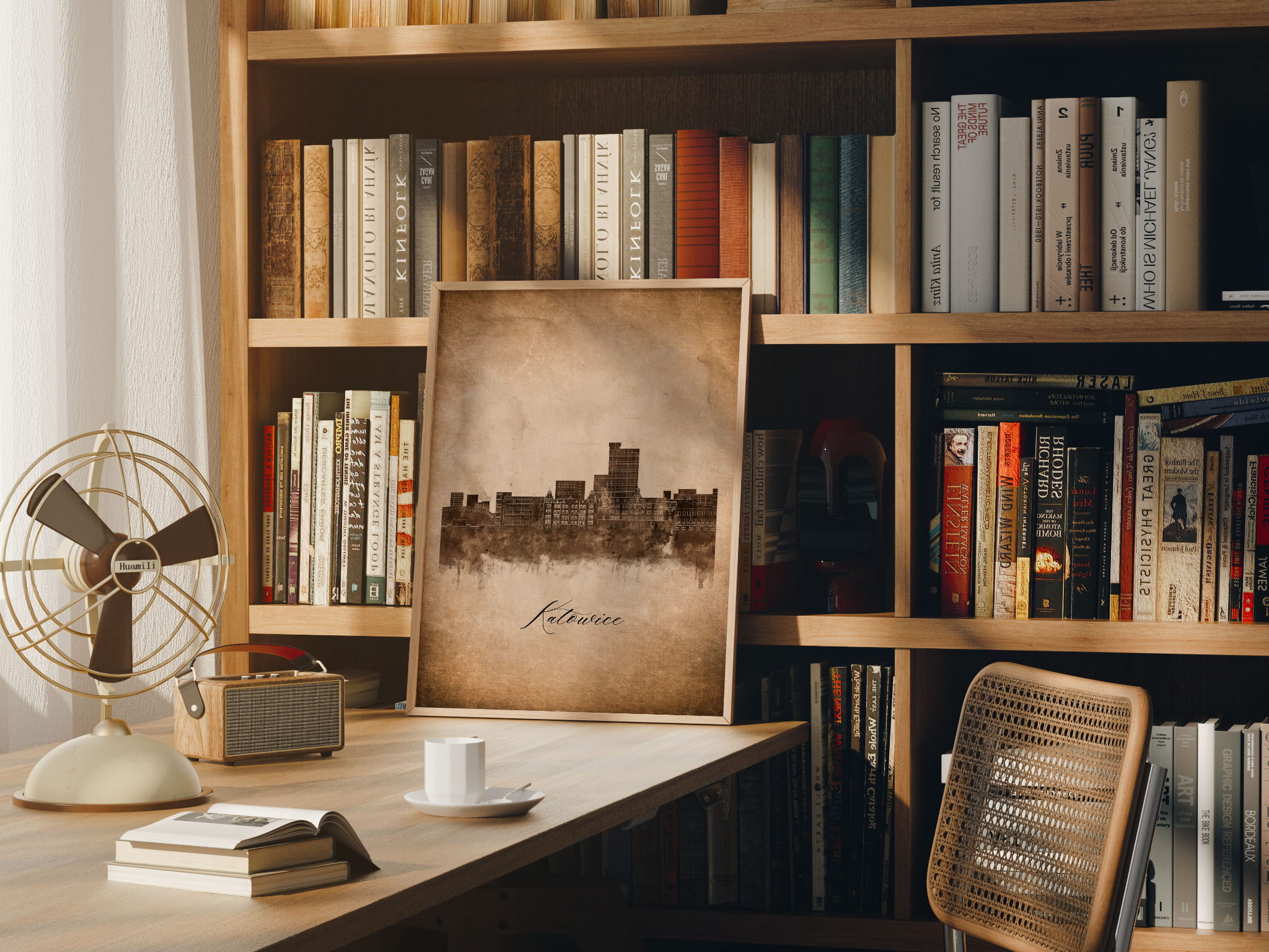 Plakat Skylines Katowice w stylu Vintage- Pionowy