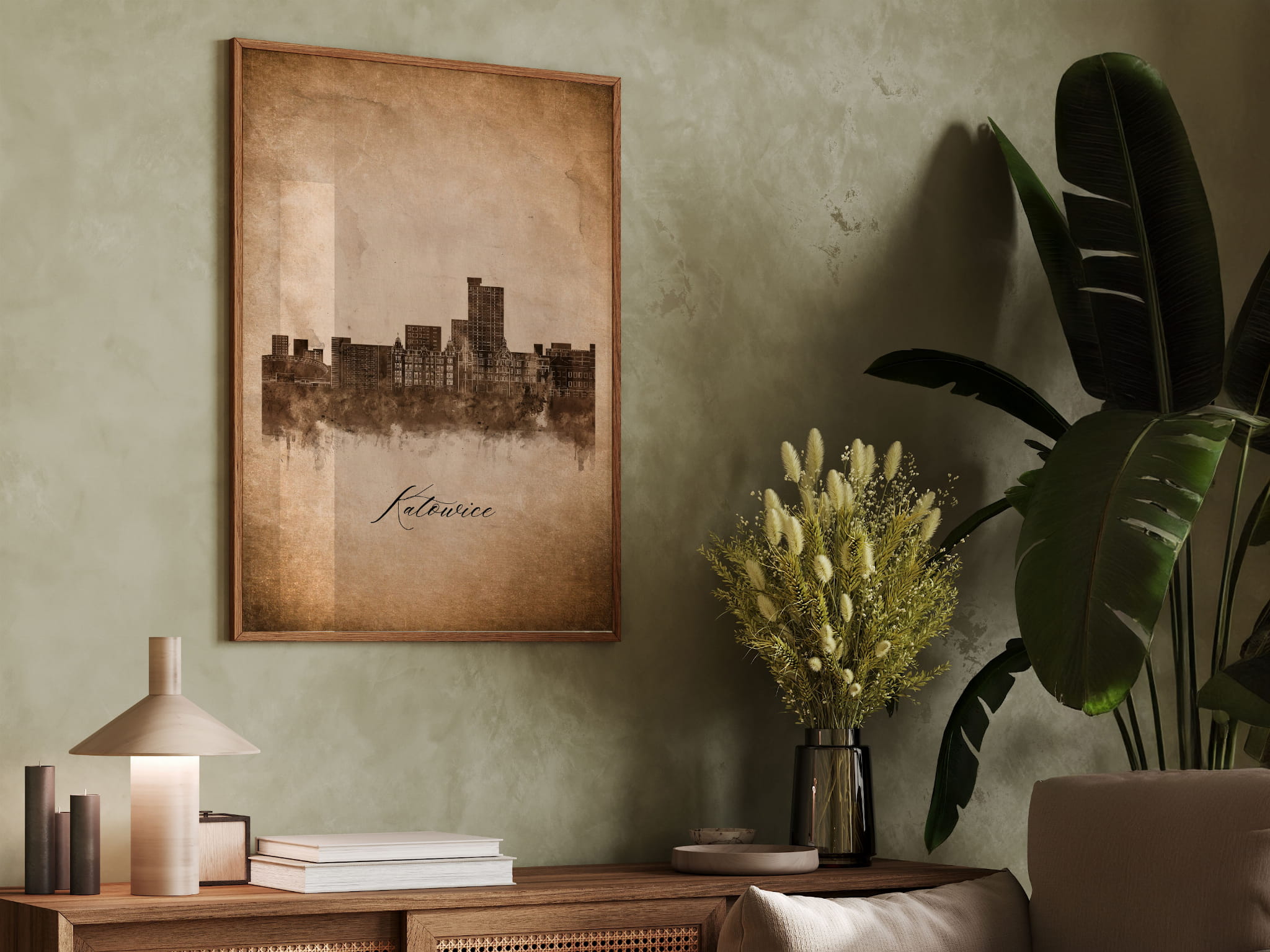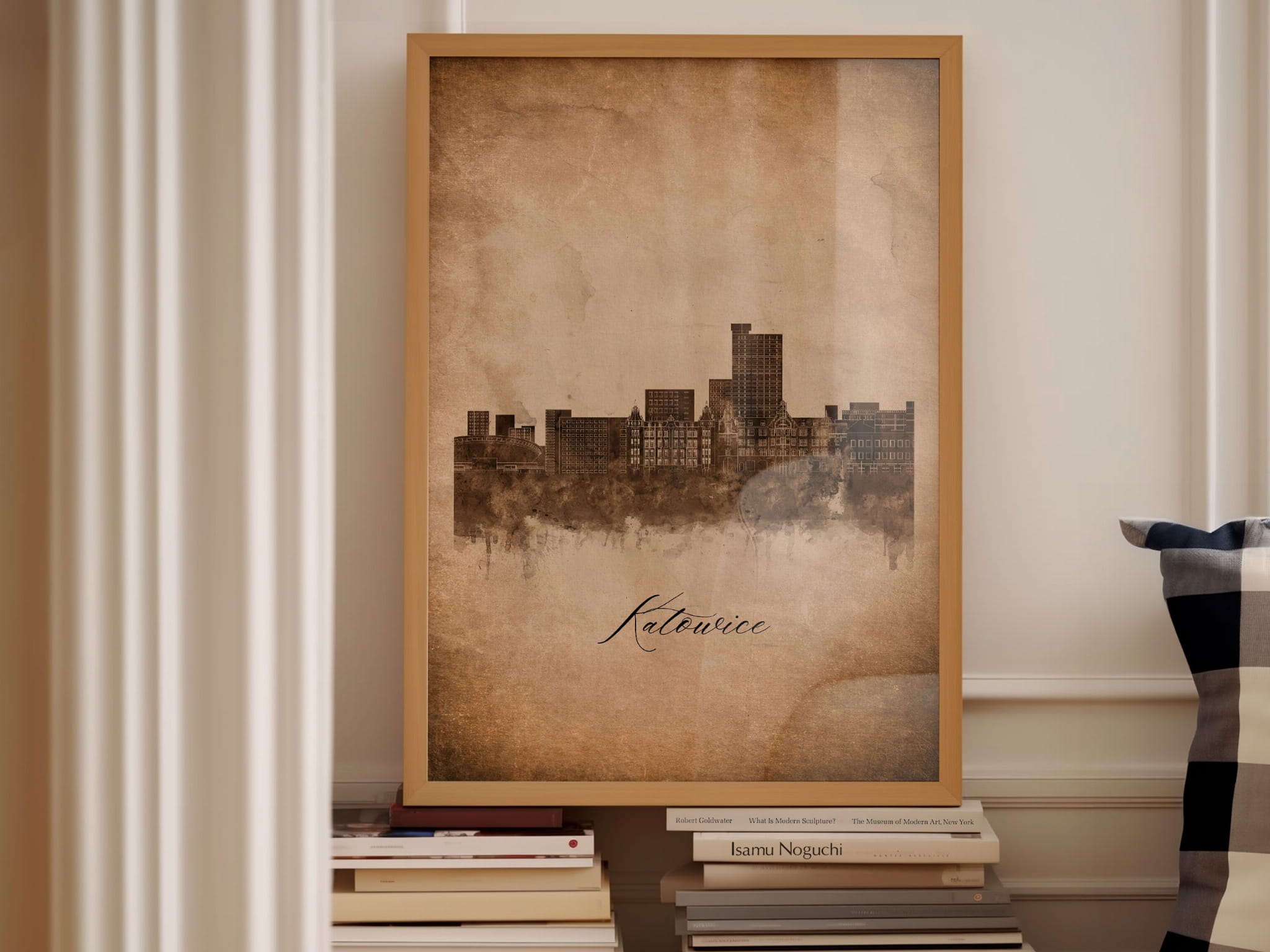 Plakaty skyline w stylu vintage to nowoczesne dzieła sztuki, które nawiązują do estetyki minionych dekad. Przedstawiają miejskie krajobrazy w retro kolorystyce, z wyblakłymi barwami i z delikatną patyną czasu. Kontury są często zmiękczone, a szczegóły budynków lekko stylizowane, co dodaje im nostalgicznego uroku. Tła plakatów utrzymane są w odcieniach przypominających stary papier, z subtelnymi teksturami i ciepłymi, przygaszonymi tonami. Całość tworzy elegancki i przytulny klimat, idealny do wnętrz, które łączą nowoczesność z klasycznym wdziękiem.