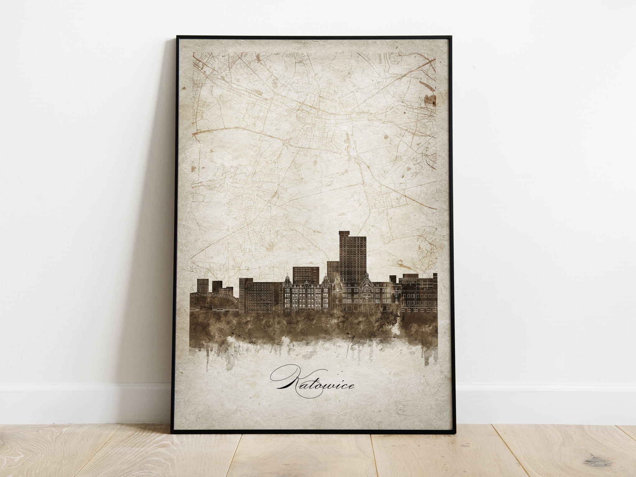 Plakat Skylines Katowice w stylu Vintage- Pionowy