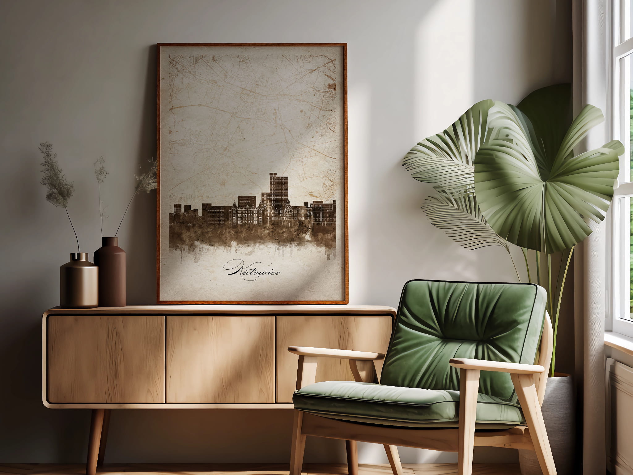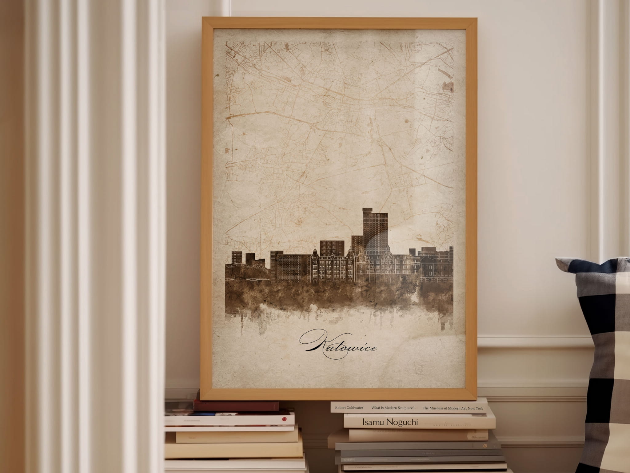 Plakaty skyline w stylu vintage to nowoczesne dzieła sztuki, które nawiązują do estetyki minionych dekad. Przedstawiają miejskie krajobrazy w retro kolorystyce, z wyblakłymi barwami i z delikatną patyną czasu. Kontury są często zmiękczone, a szczegóły budynków lekko stylizowane, co dodaje im nostalgicznego uroku. Tła plakatów utrzymane są w odcieniach przypominających stary papier, z subtelnymi teksturami i ciepłymi, przygaszonymi tonami. Całość tworzy elegancki i przytulny klimat, idealny do wnętrz, które łączą nowoczesność z klasycznym wdziękiem.