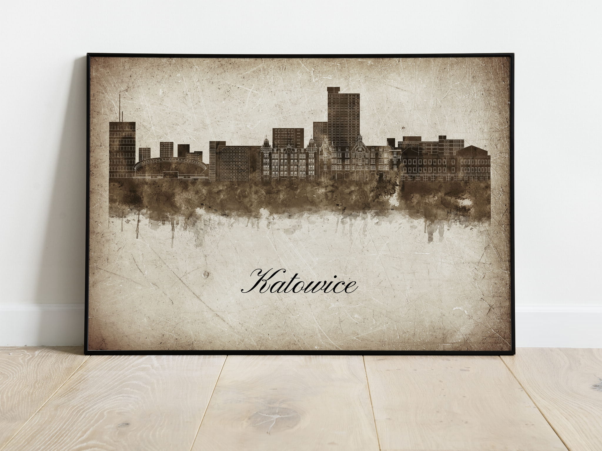 Plakat Skylines Katowice w stylu Vintage- Poziomy
