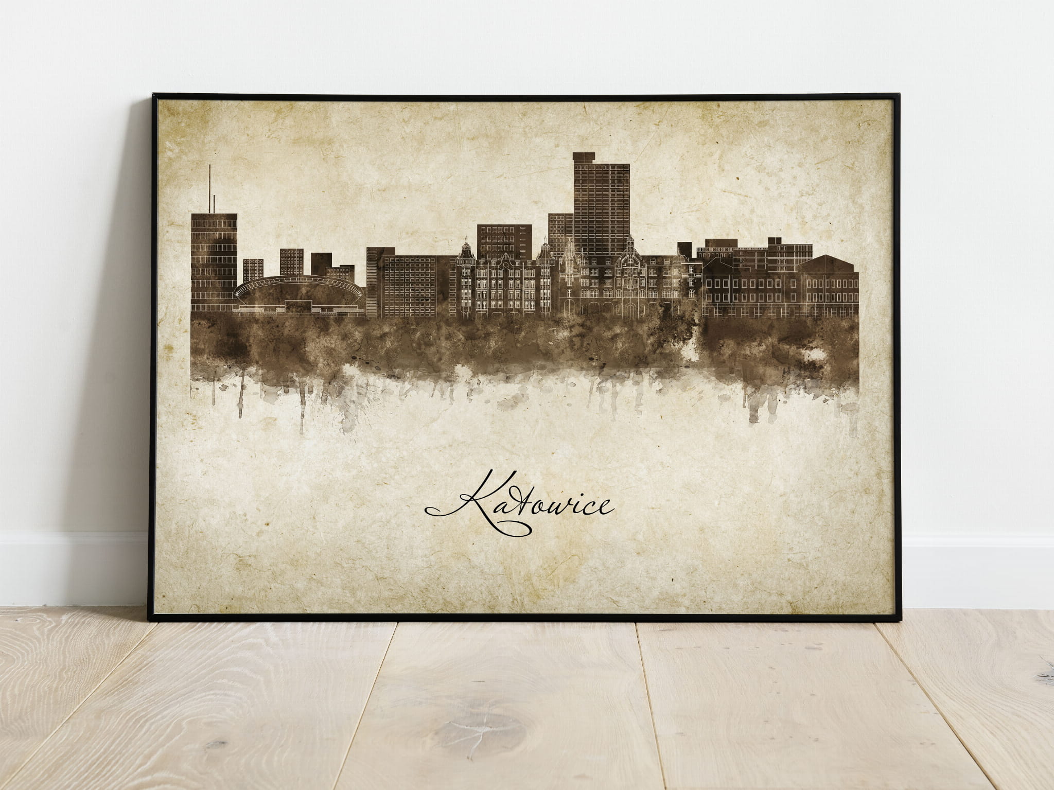 Plakat Skylines Katowice w stylu Vintage- Poziomy