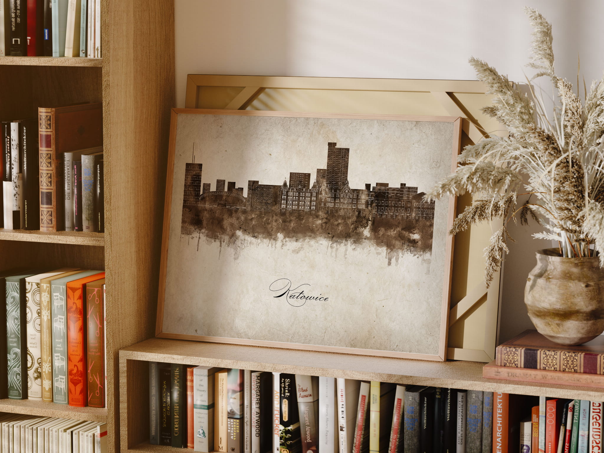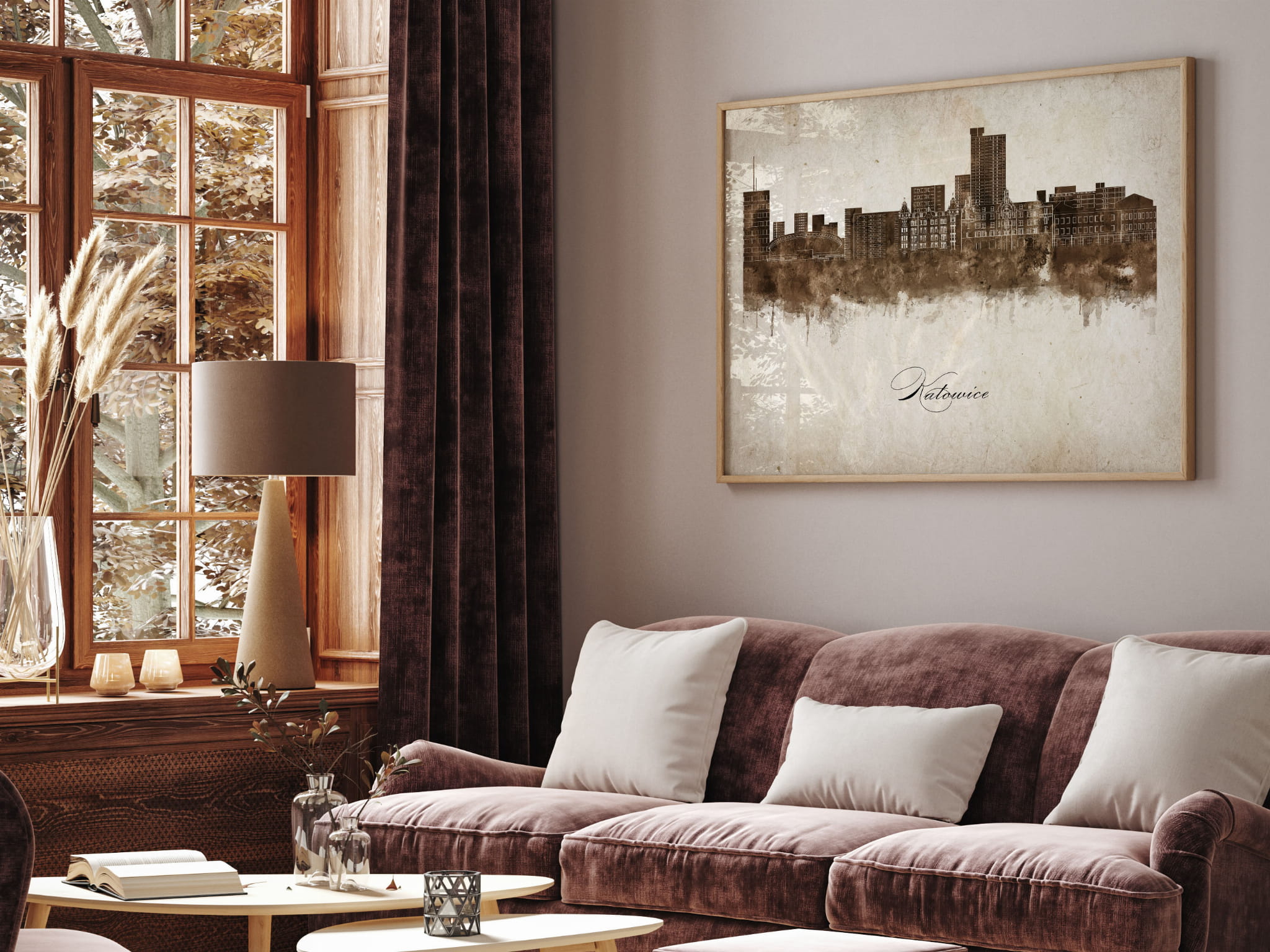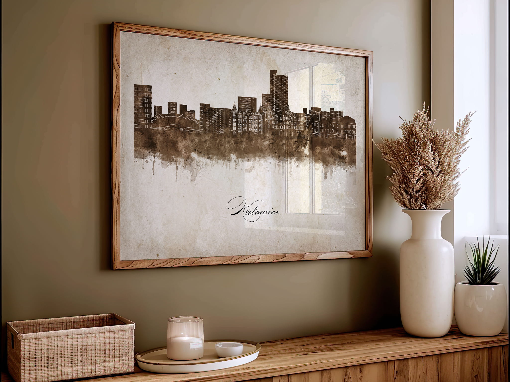 Plakaty skyline w stylu vintage to nowoczesne dzieła sztuki, które nawiązują do estetyki minionych dekad. Przedstawiają miejskie krajobrazy w retro kolorystyce, z wyblakłymi barwami i z delikatną patyną czasu. Kontury są często zmiękczone, a szczegóły budynków lekko stylizowane, co dodaje im nostalgicznego uroku. Tła plakatów utrzymane są w odcieniach przypominających stary papier, z subtelnymi teksturami i ciepłymi, przygaszonymi tonami. Całość tworzy elegancki i przytulny klimat, idealny do wnętrz, które łączą nowoczesność z klasycznym wdziękiem.