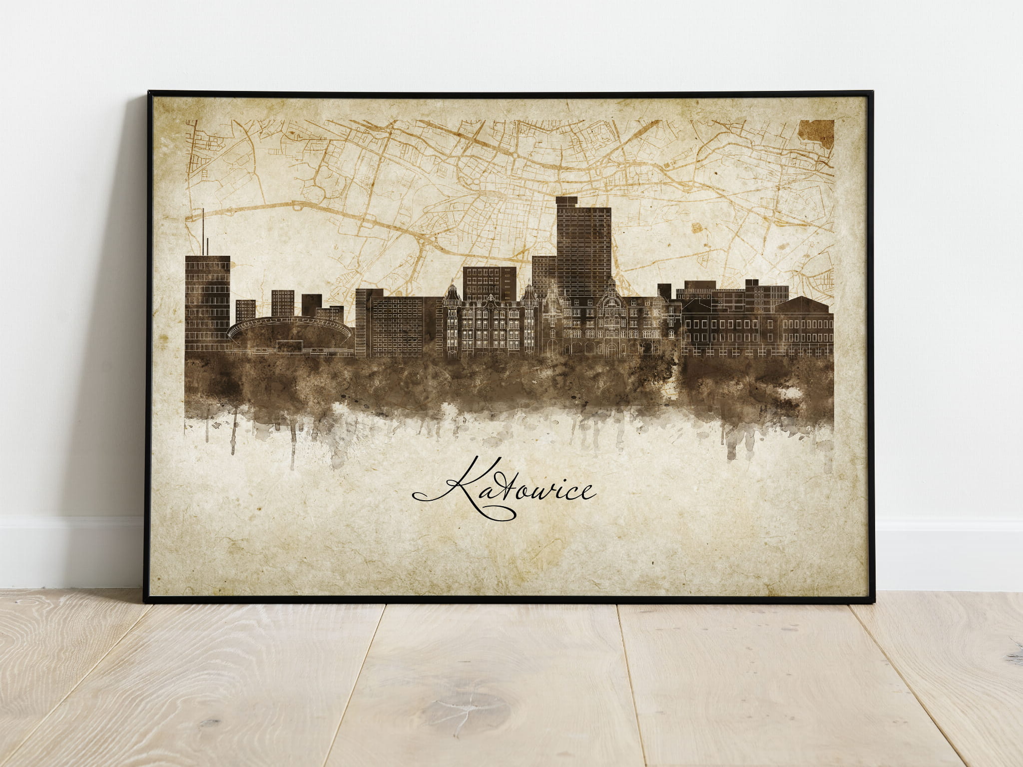 Plakat Skylines Katowice w stylu Vintage- Poziomy