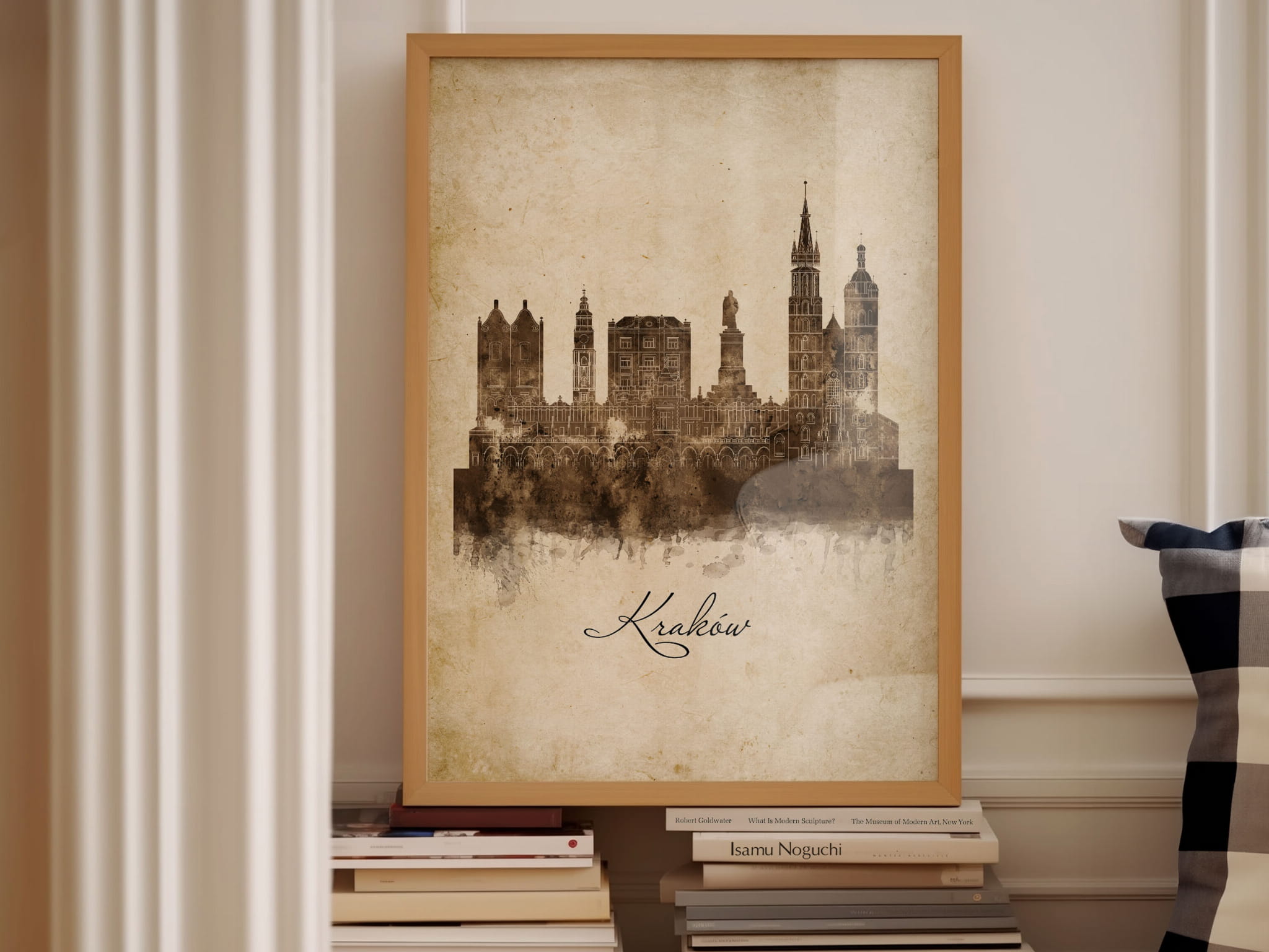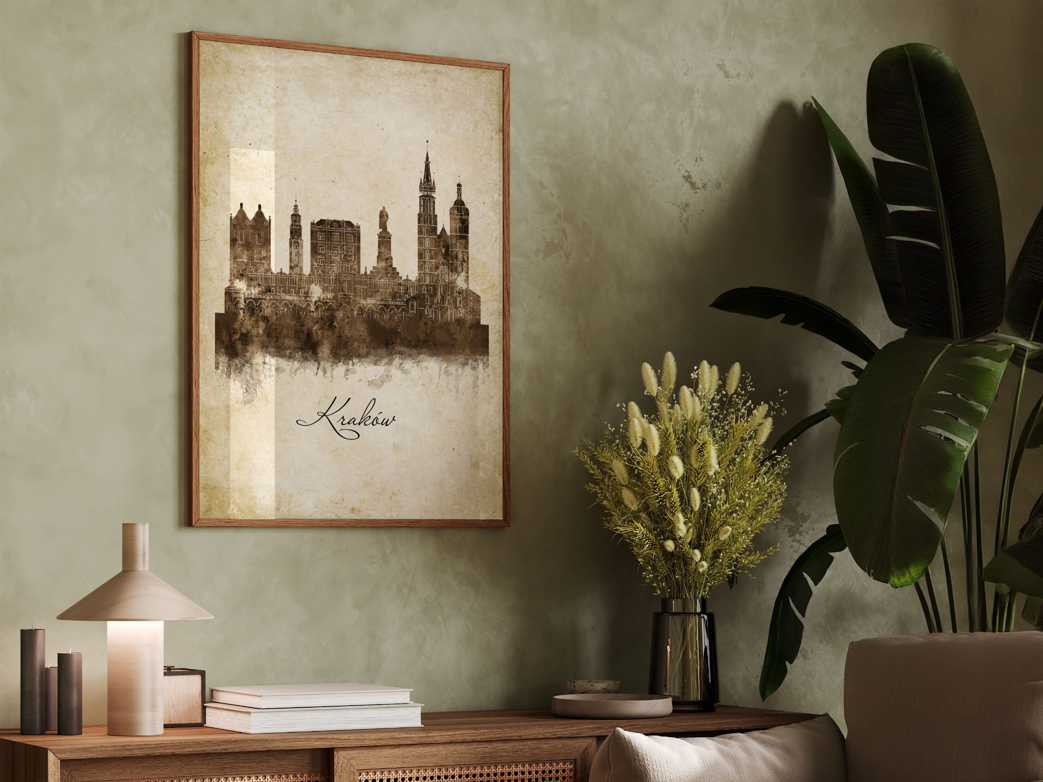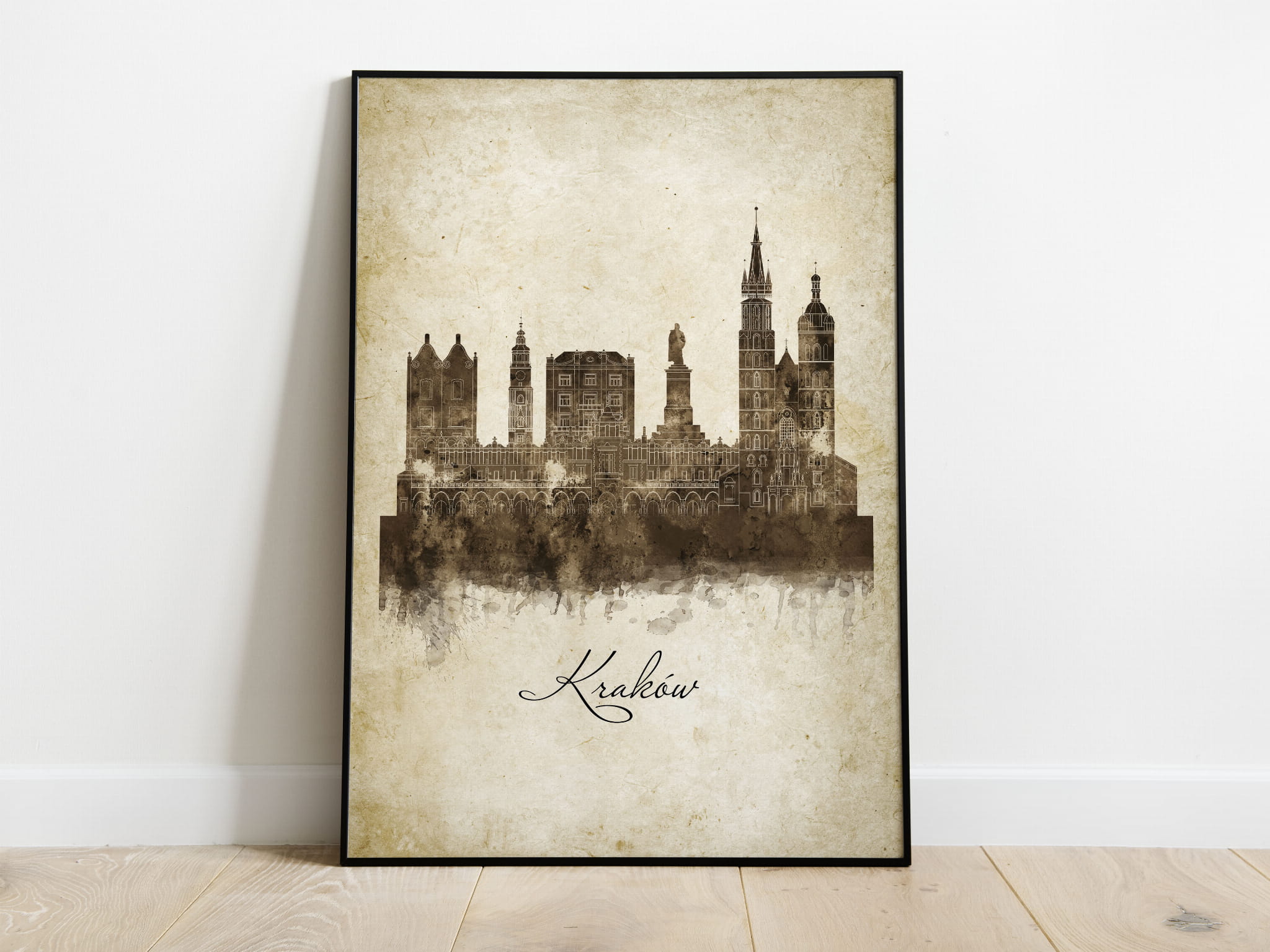 Plakat Skylines Kraków w stylu Vintage- Pionowy, Styl akwarelowy