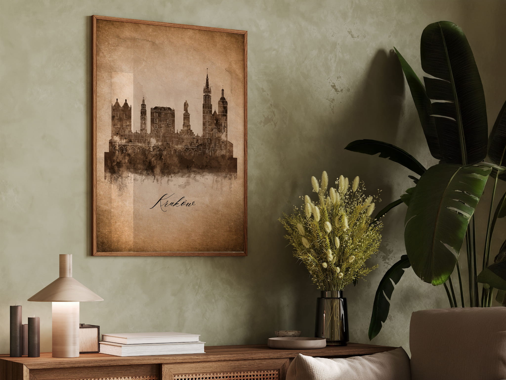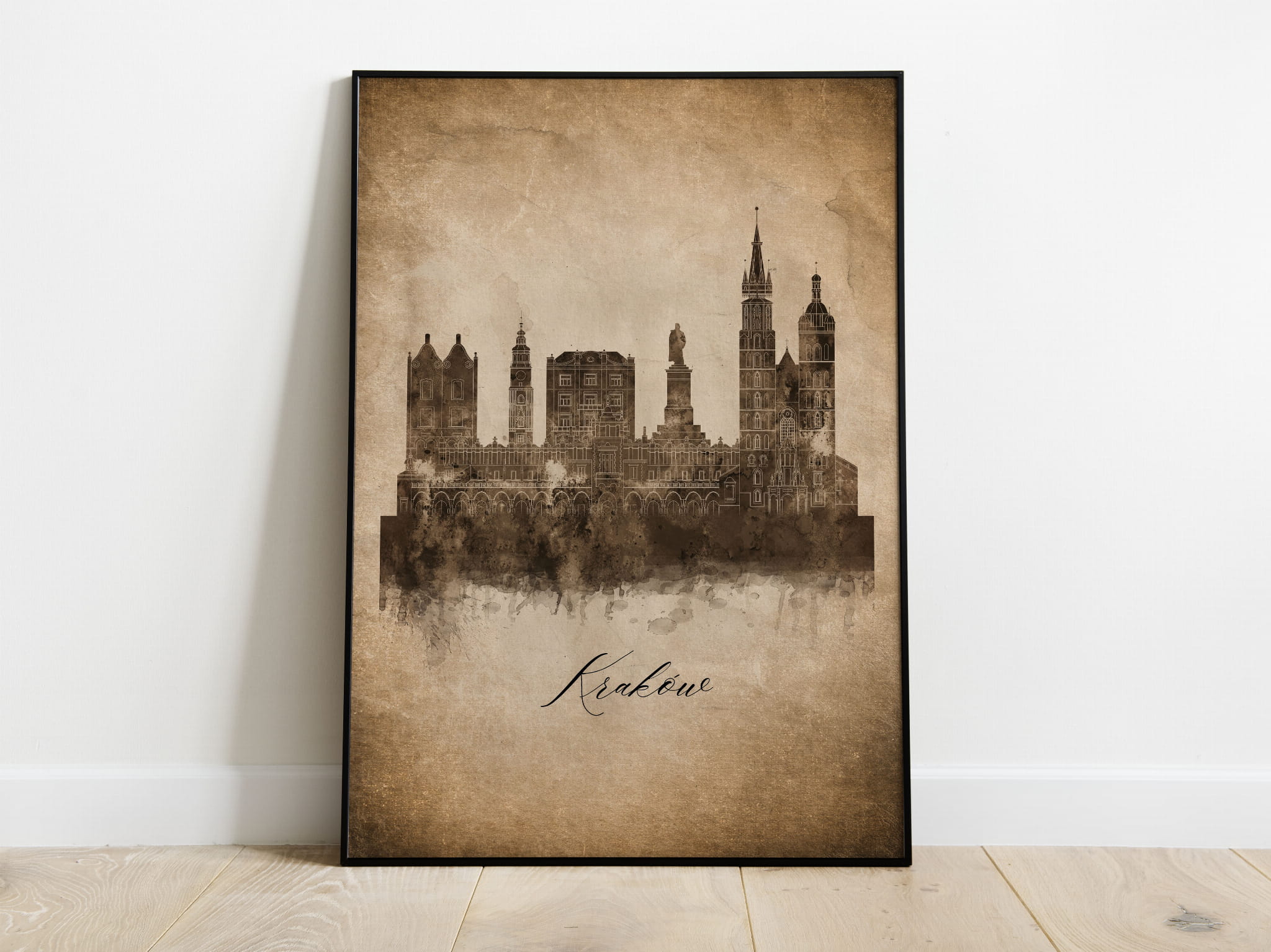 Plakat Skylines Kraków w stylu Vintage- Pionowy, Styl akwarelowy