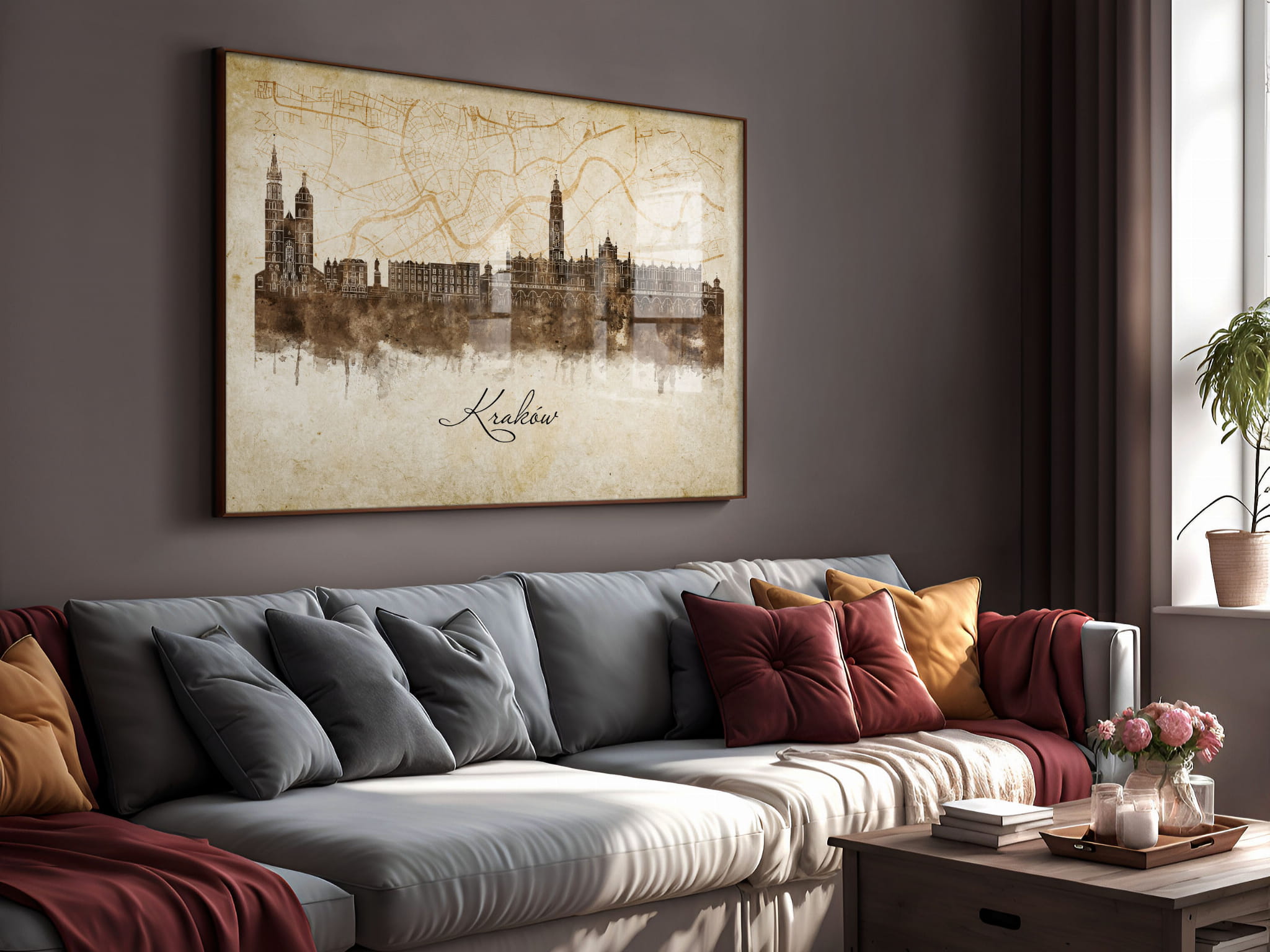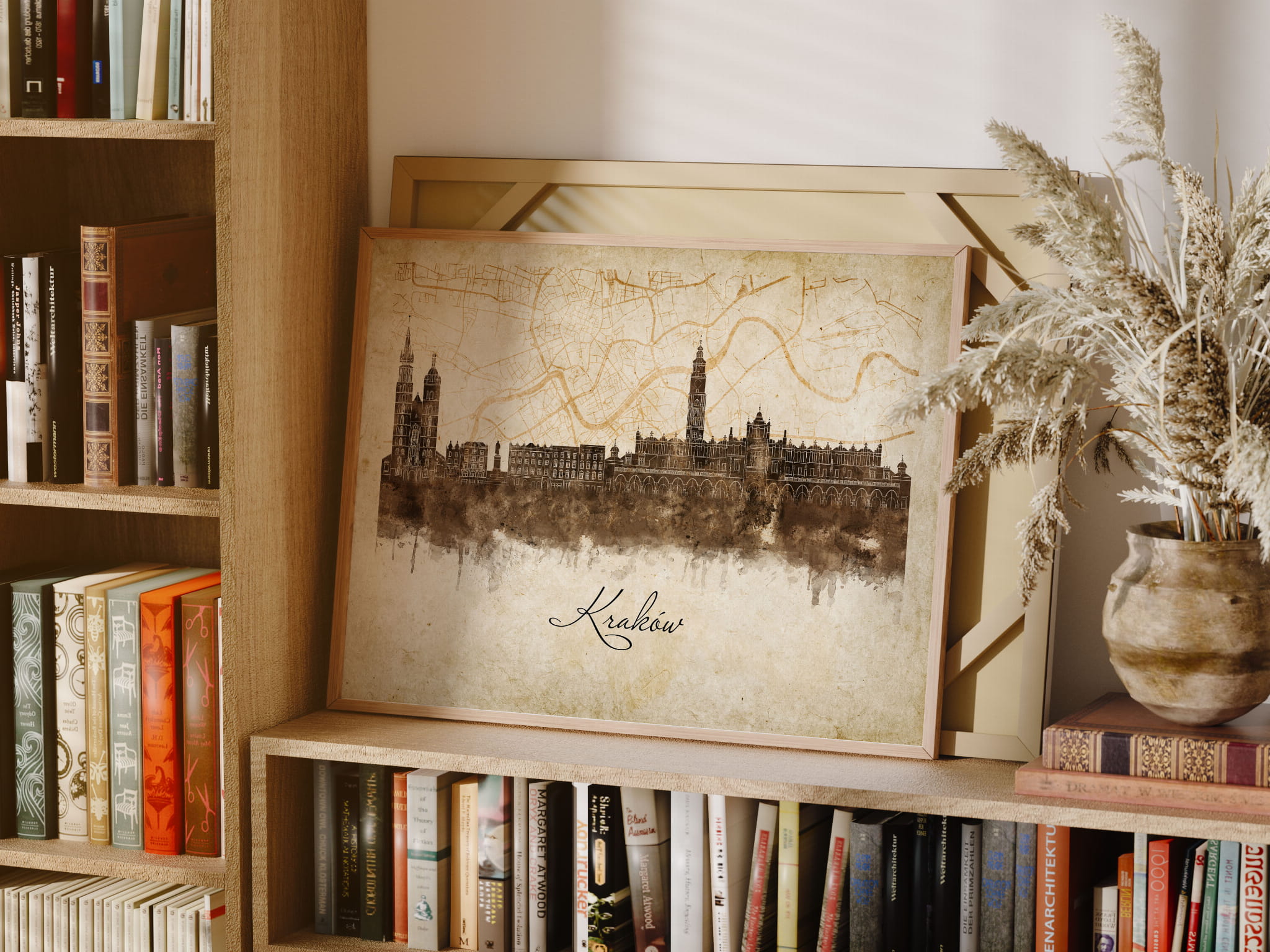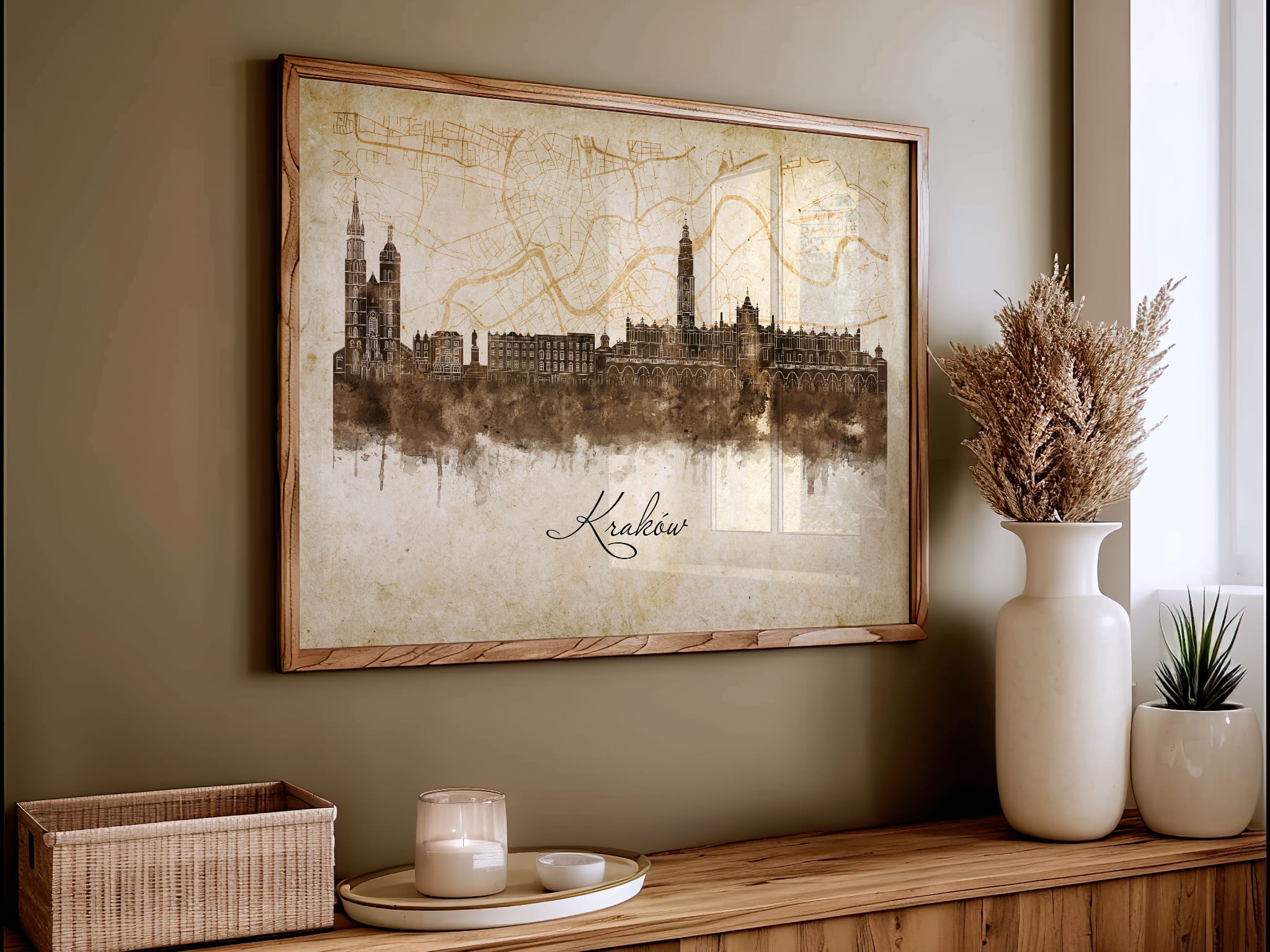 Plakaty skyline w stylu vintage to nowoczesne dzieła sztuki, które nawiązują do estetyki minionych dekad. Przedstawiają miejskie krajobrazy w retro kolorystyce, z wyblakłymi barwami i z delikatną patyną czasu. Kontury są często zmiękczone, a szczegóły budynków lekko stylizowane, co dodaje im nostalgicznego uroku. Tła plakatów utrzymane są w odcieniach przypominających stary papier, z subtelnymi teksturami i ciepłymi, przygaszonymi tonami. Całość tworzy elegancki i przytulny klimat, idealny do wnętrz, które łączą nowoczesność z klasycznym wdziękiem.