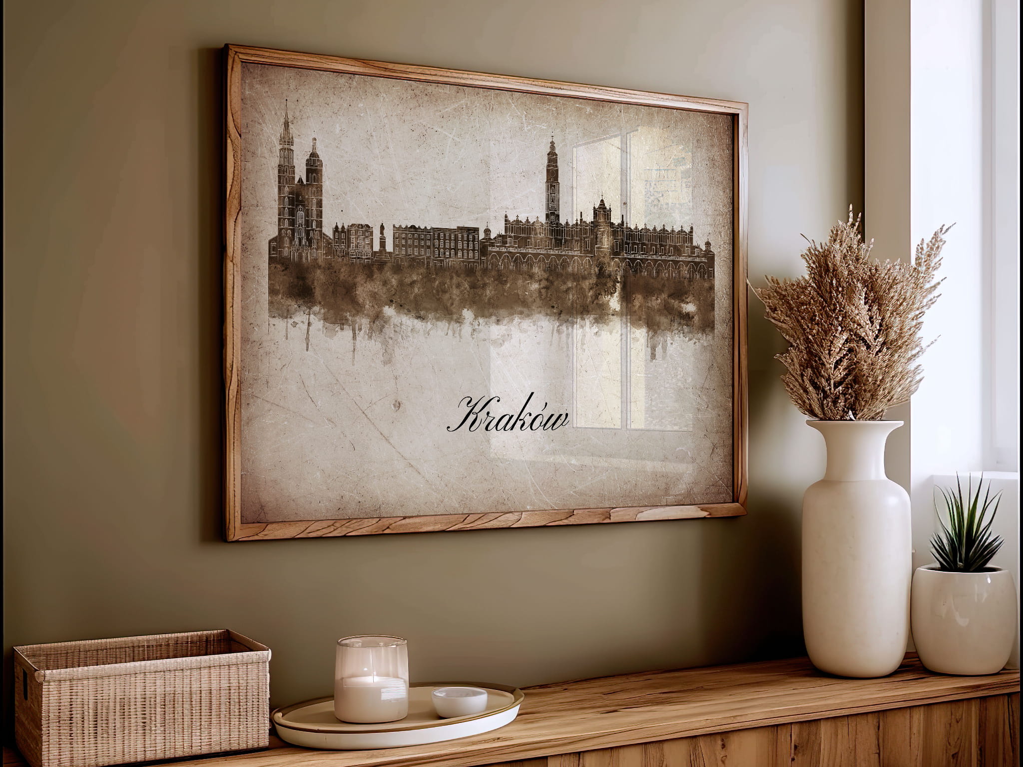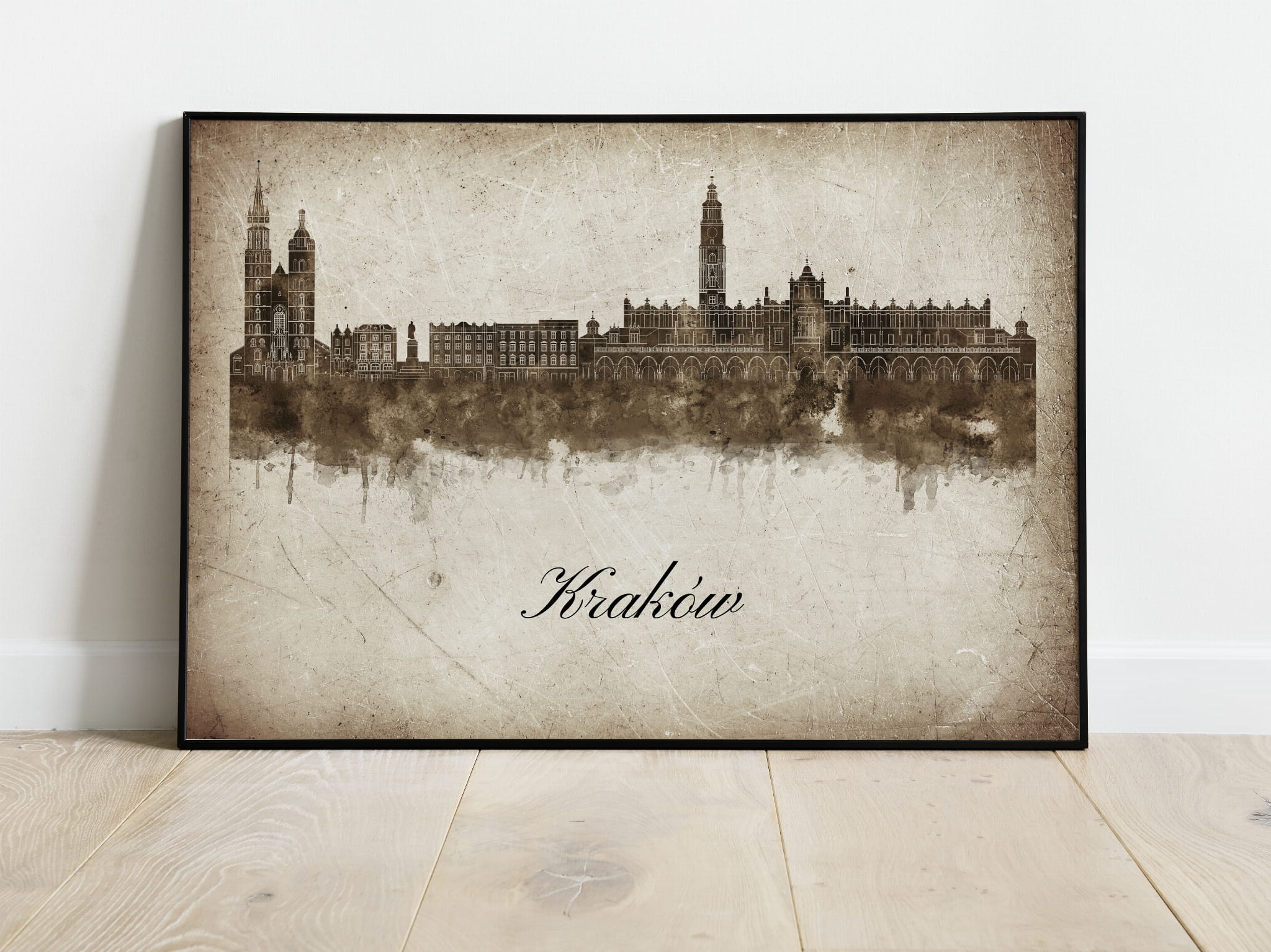 Plakat Skylines Kraków w stylu Vintage- Poziomy