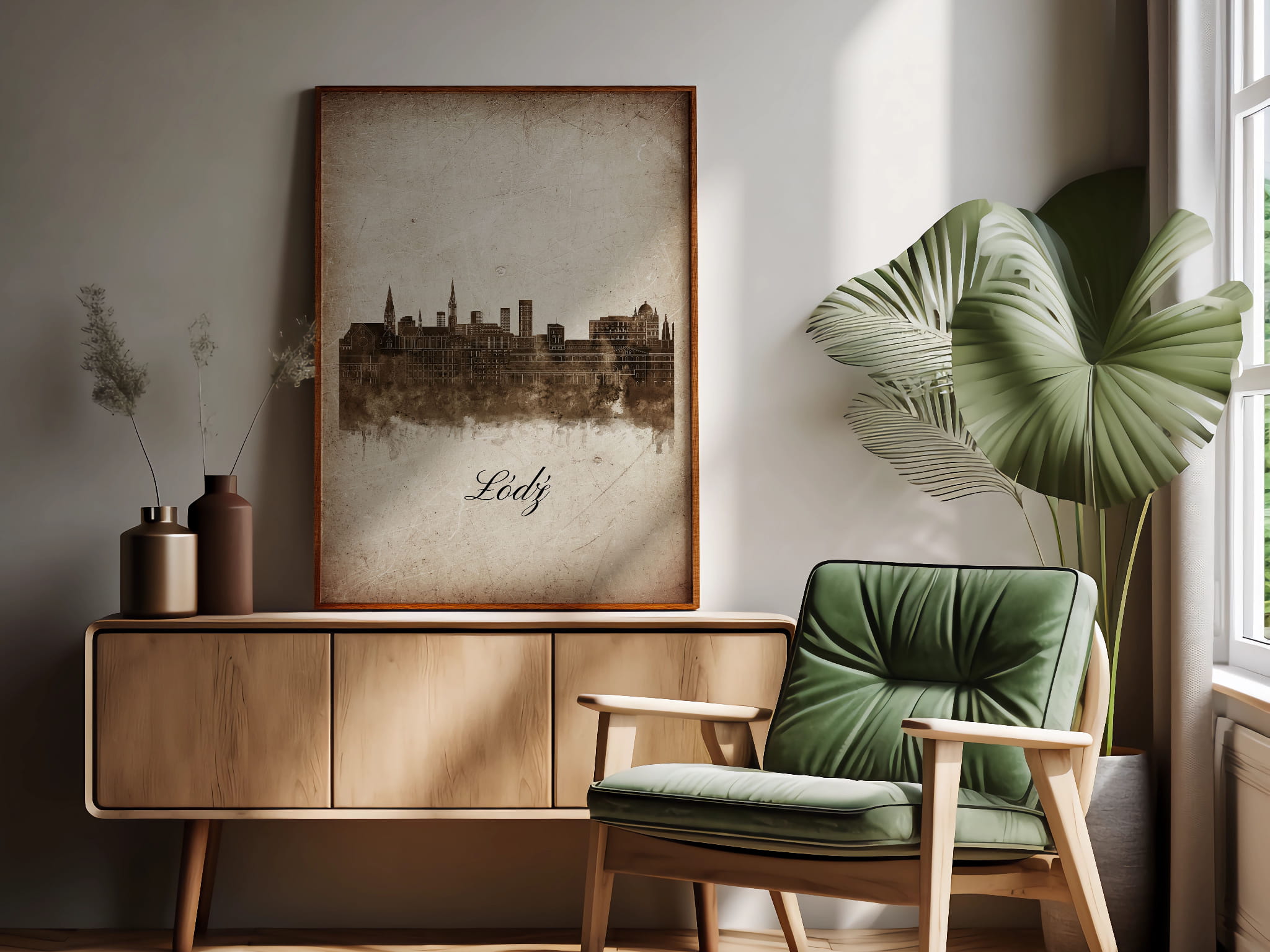 Plakaty skyline w stylu vintage to nowoczesne dzieła sztuki, które nawiązują do estetyki minionych dekad. Przedstawiają miejskie krajobrazy w retro kolorystyce, z wyblakłymi barwami i z delikatną patyną czasu. Kontury są często zmiękczone, a szczegóły budynków lekko stylizowane, co dodaje im nostalgicznego uroku. Tła plakatów utrzymane są w odcieniach przypominających stary papier, z subtelnymi teksturami i ciepłymi, przygaszonymi tonami. Całość tworzy elegancki i przytulny klimat, idealny do wnętrz, które łączą nowoczesność z klasycznym wdziękiem.
