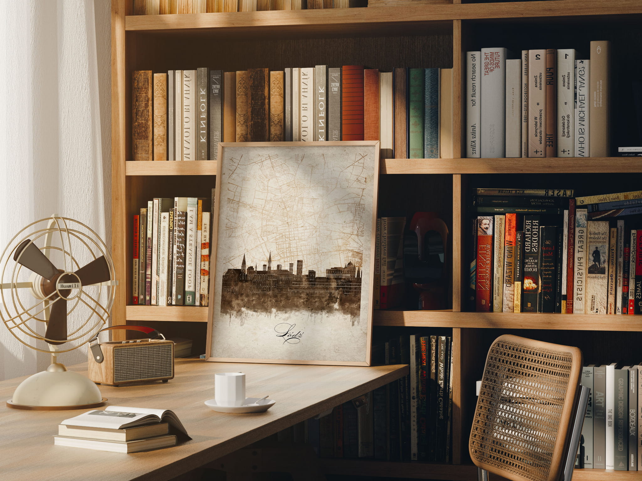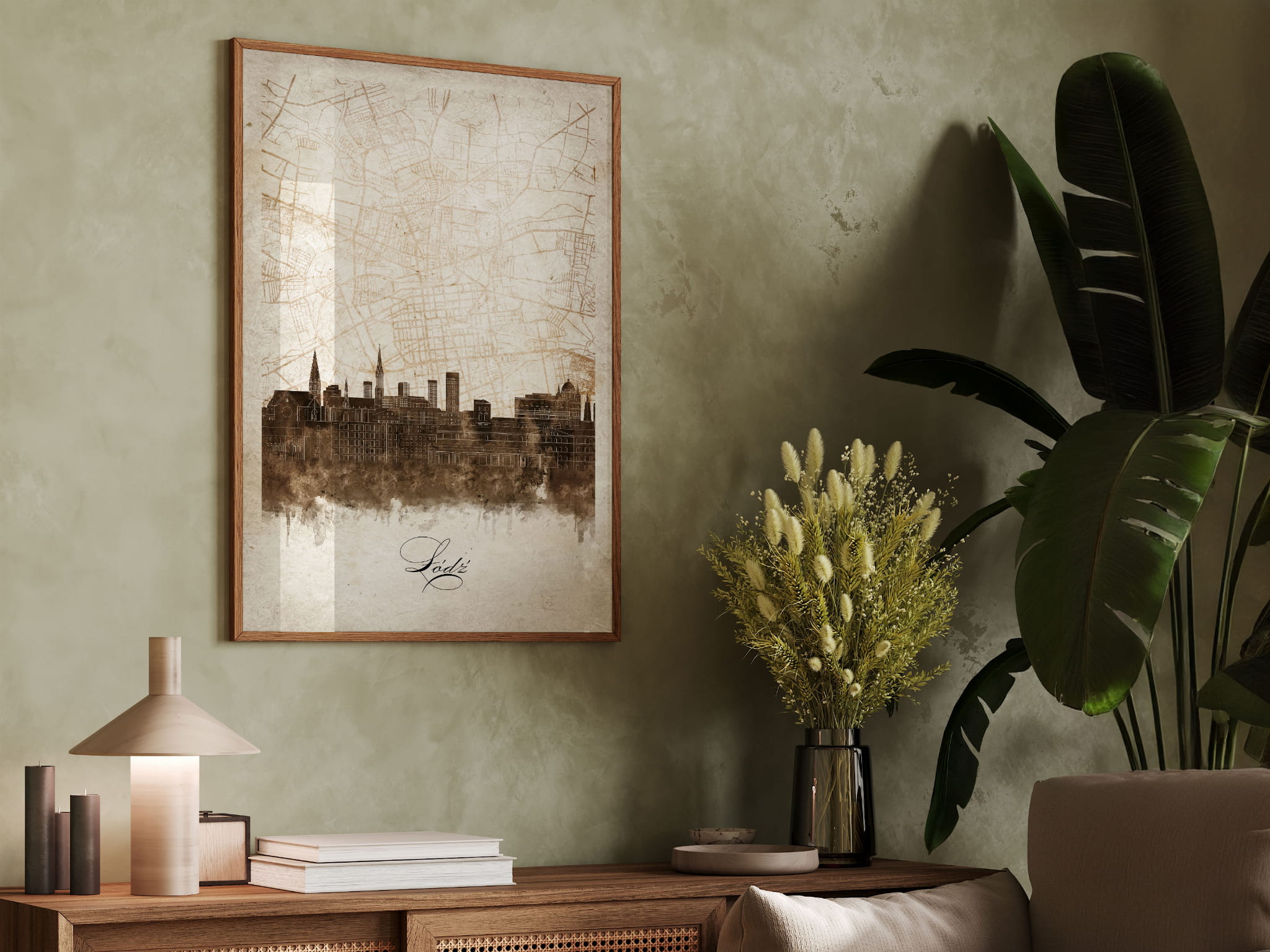 Plakaty skyline w stylu vintage to nowoczesne dzieła sztuki, które nawiązują do estetyki minionych dekad. Przedstawiają miejskie krajobrazy w retro kolorystyce, z wyblakłymi barwami i z delikatną patyną czasu. Kontury są często zmiękczone, a szczegóły budynków lekko stylizowane, co dodaje im nostalgicznego uroku. Tła plakatów utrzymane są w odcieniach przypominających stary papier, z subtelnymi teksturami i ciepłymi, przygaszonymi tonami. Całość tworzy elegancki i przytulny klimat, idealny do wnętrz, które łączą nowoczesność z klasycznym wdziękiem.