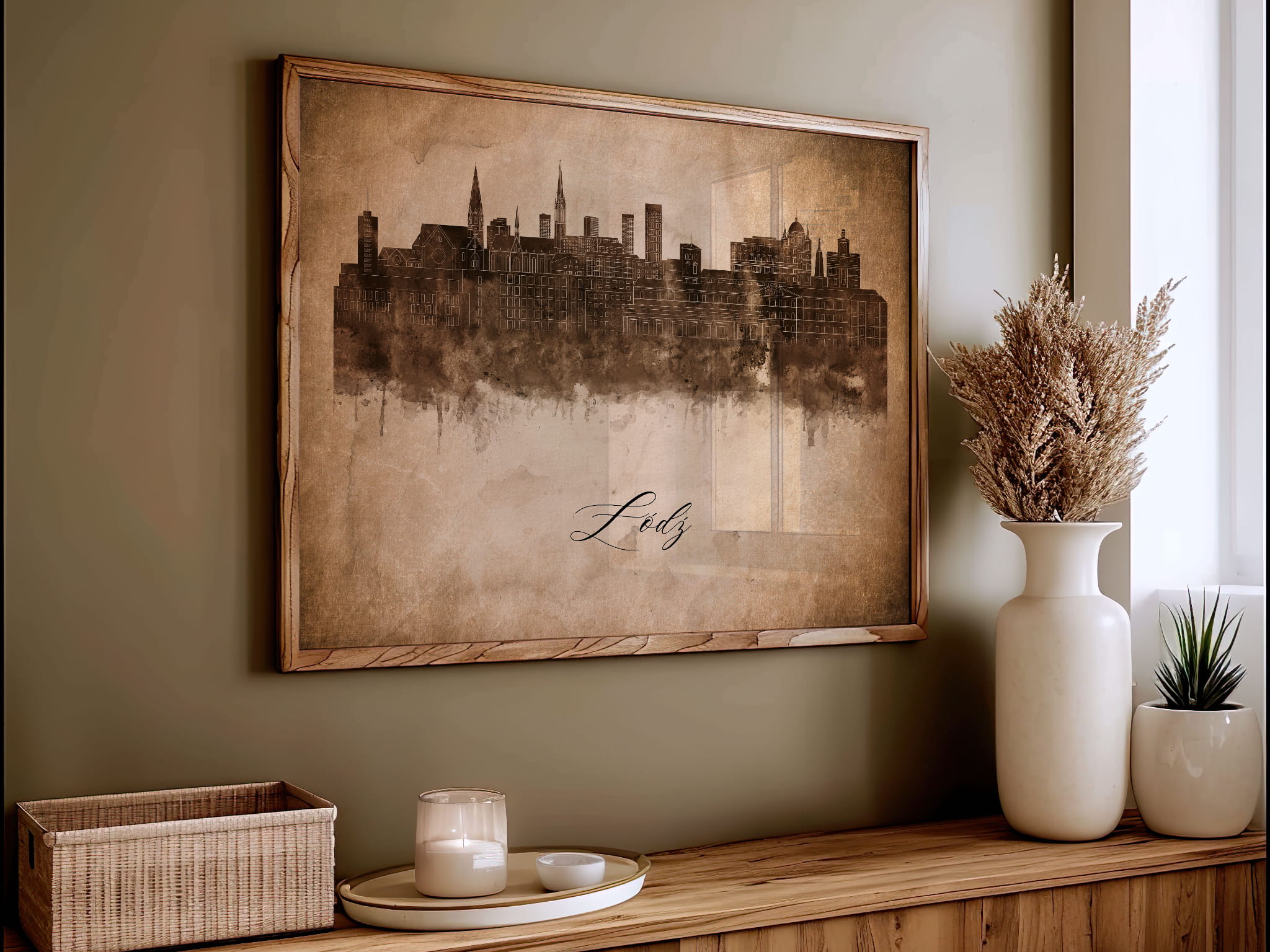 Plakaty skyline w stylu vintage to nowoczesne dzieła sztuki, które nawiązują do estetyki minionych dekad. Przedstawiają miejskie krajobrazy w retro kolorystyce, z wyblakłymi barwami i z delikatną patyną czasu. Kontury są często zmiękczone, a szczegóły budynków lekko stylizowane, co dodaje im nostalgicznego uroku. Tła plakatów utrzymane są w odcieniach przypominających stary papier, z subtelnymi teksturami i ciepłymi, przygaszonymi tonami. Całość tworzy elegancki i przytulny klimat, idealny do wnętrz, które łączą nowoczesność z klasycznym wdziękiem.