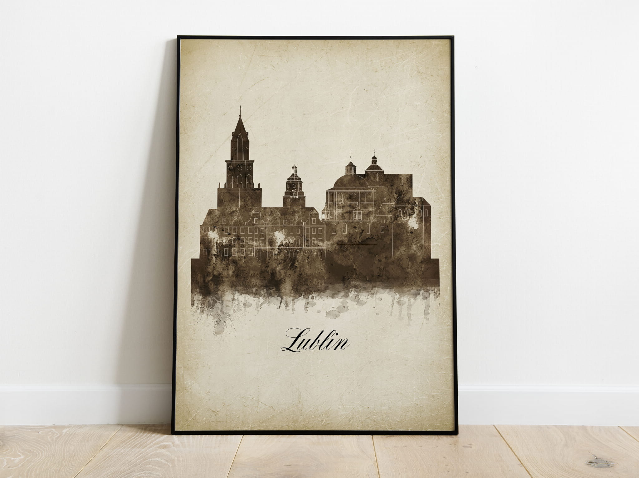Plakat Skylines Lublin w stylu Vintage- Pionowy, Styl akwarelowy