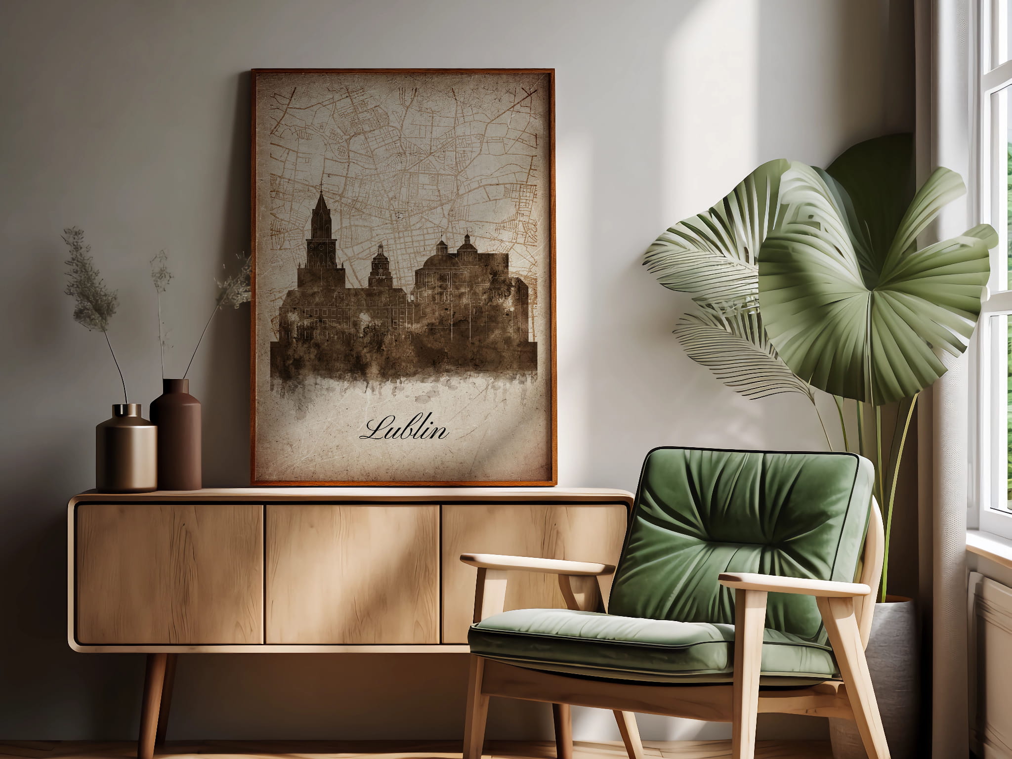 Plakaty skyline w stylu vintage to nowoczesne dzieła sztuki, które nawiązują do estetyki minionych dekad. Przedstawiają miejskie krajobrazy w retro kolorystyce, z wyblakłymi barwami i z delikatną patyną czasu. Kontury są często zmiękczone, a szczegóły budynków lekko stylizowane, co dodaje im nostalgicznego uroku. Tła plakatów utrzymane są w odcieniach przypominających stary papier, z subtelnymi teksturami i ciepłymi, przygaszonymi tonami. Całość tworzy elegancki i przytulny klimat, idealny do wnętrz, które łączą nowoczesność z klasycznym wdziękiem.